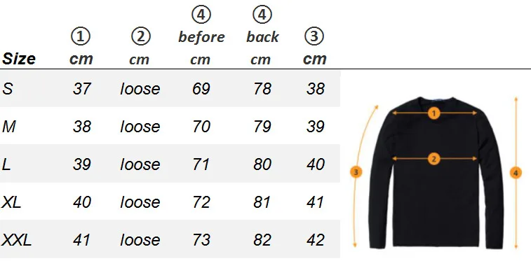 ③ Длина рукава ④ длина тела