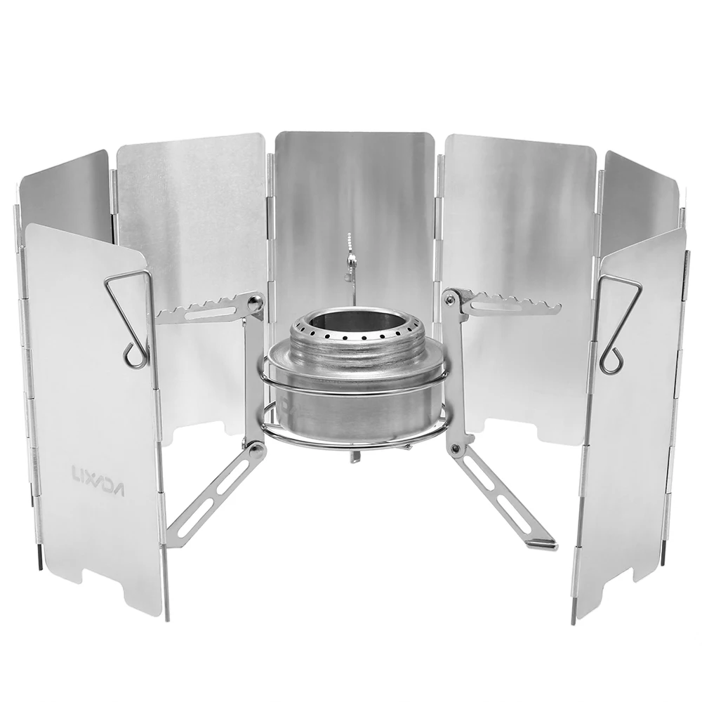 Складное ветровое стекло с 9 пластинами помогает защитить от ветра и повысить эффективность горения.
