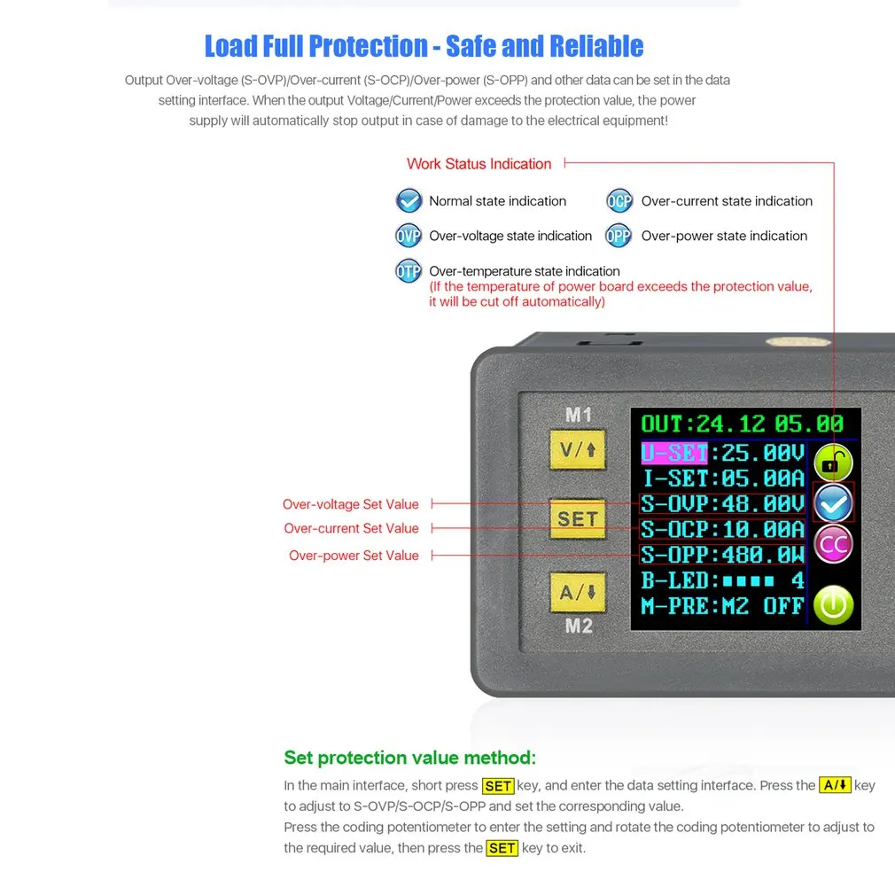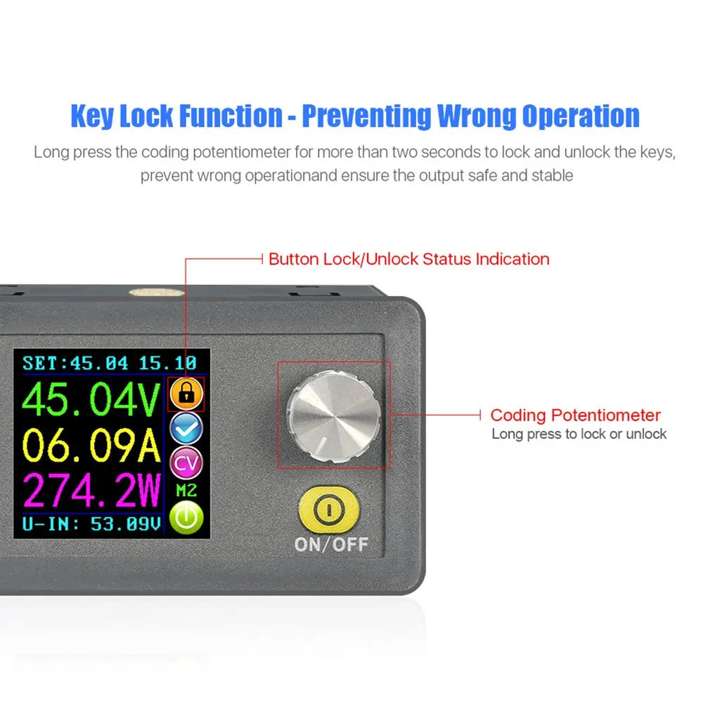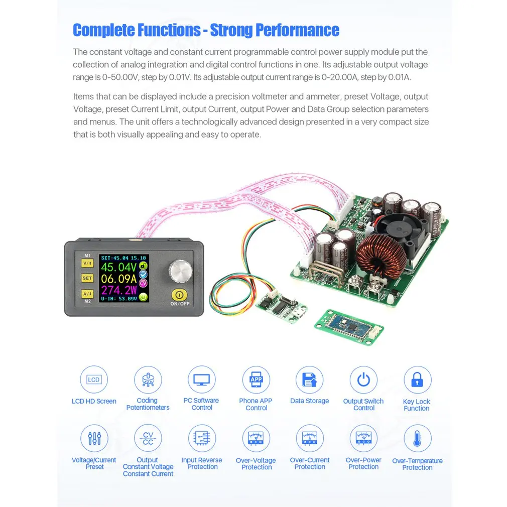 2. Диапазон регулируемого выходного напряжения составляет 0-50,00 в, шаг на 0,01 в. Его регулируемый диапазон выходного тока 0-20.00A, шаг на 0.01A.