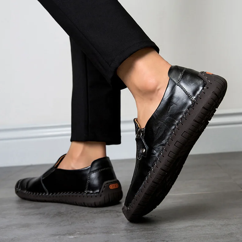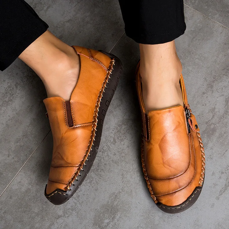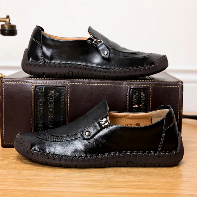Мужские мокасины из спилка повседневная обувь на плоской подошве без застежки