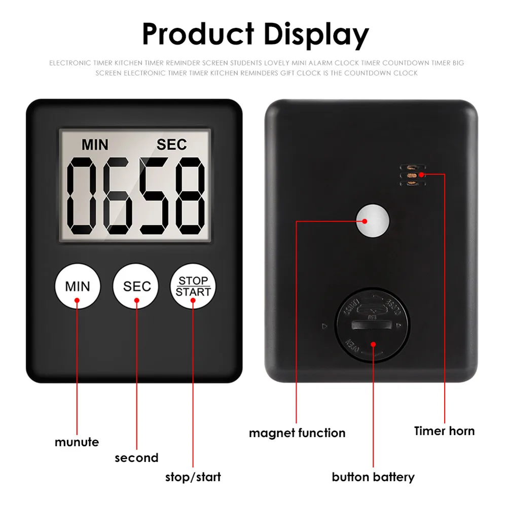 Супер тонкий цифровой ЖК-экран кухонный таймер квадратный кухонный будильник прямого и обратного счета с магнитные часы 3 вида цветов Прямая поставка