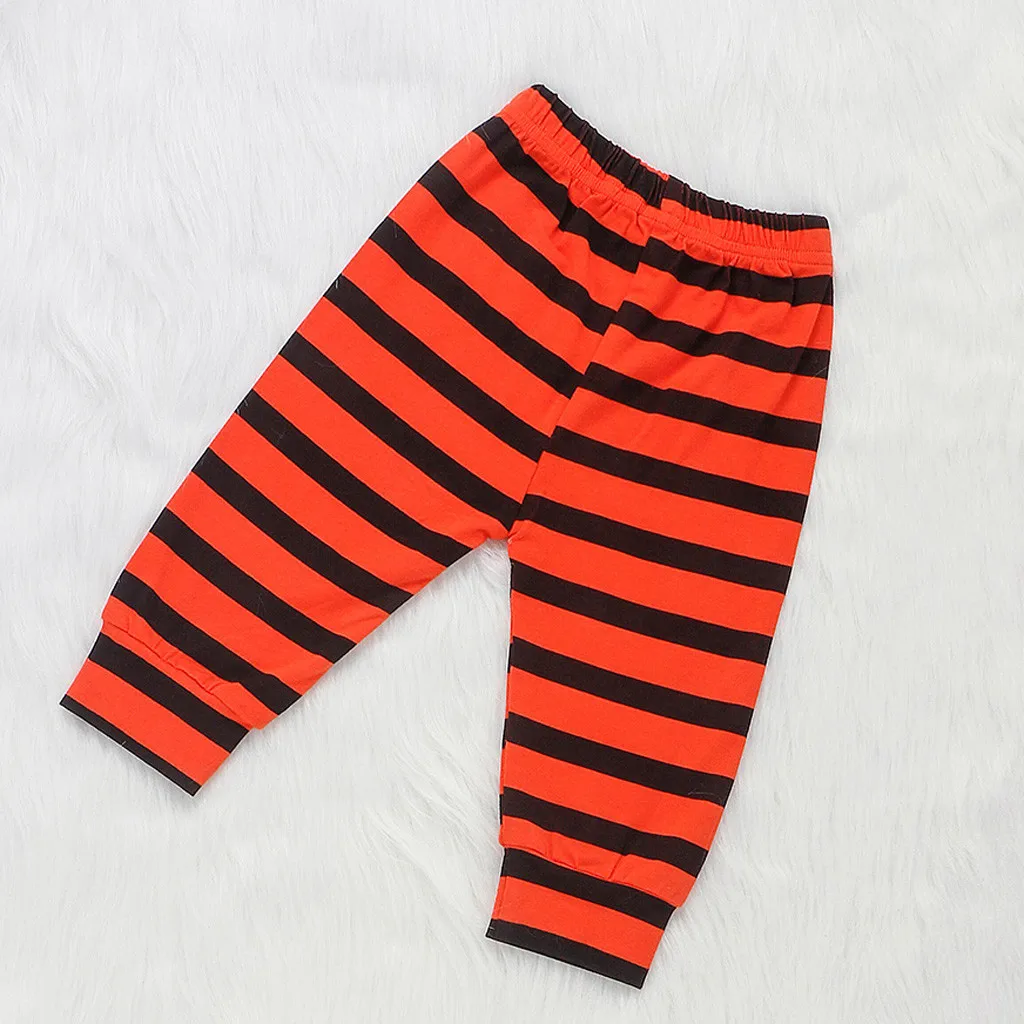 Ромпер на Хэллоуин с длинными рукавами для маленьких девочек, топ + штаны в полоску + наряды с шапкой