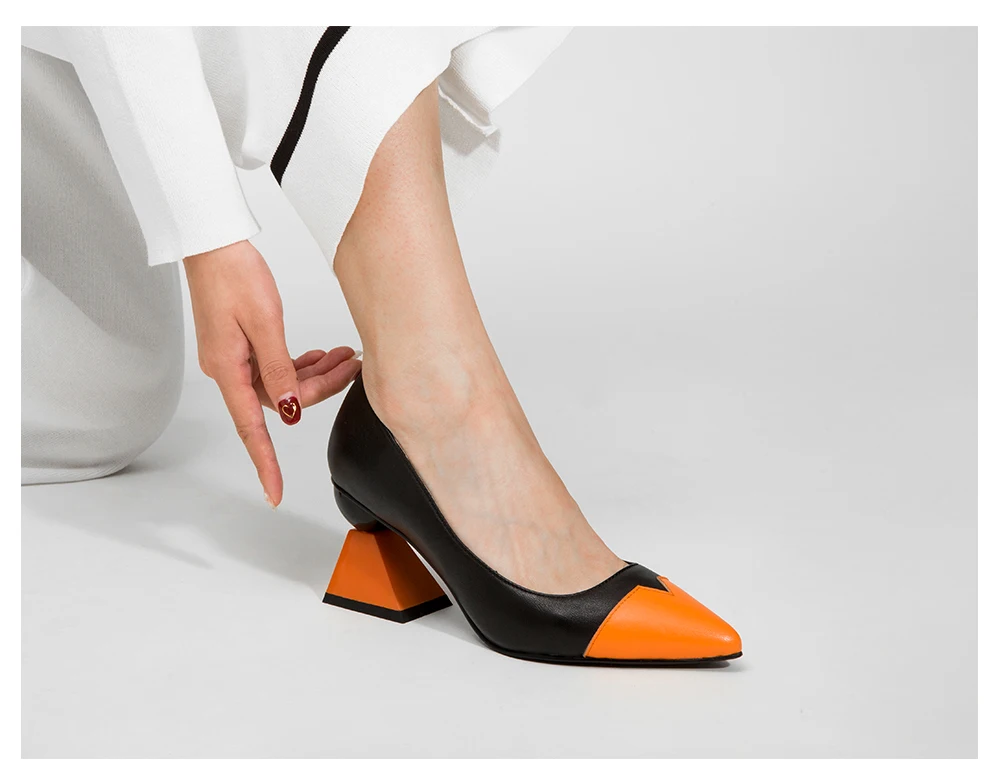 JSI/женские туфли с острым носком на высоком каблуке; Разноцветные Женские туфли из натуральной кожи в необычном стиле; Туфли-лодочки без застежки; Женская обувь; jc320