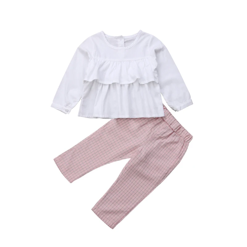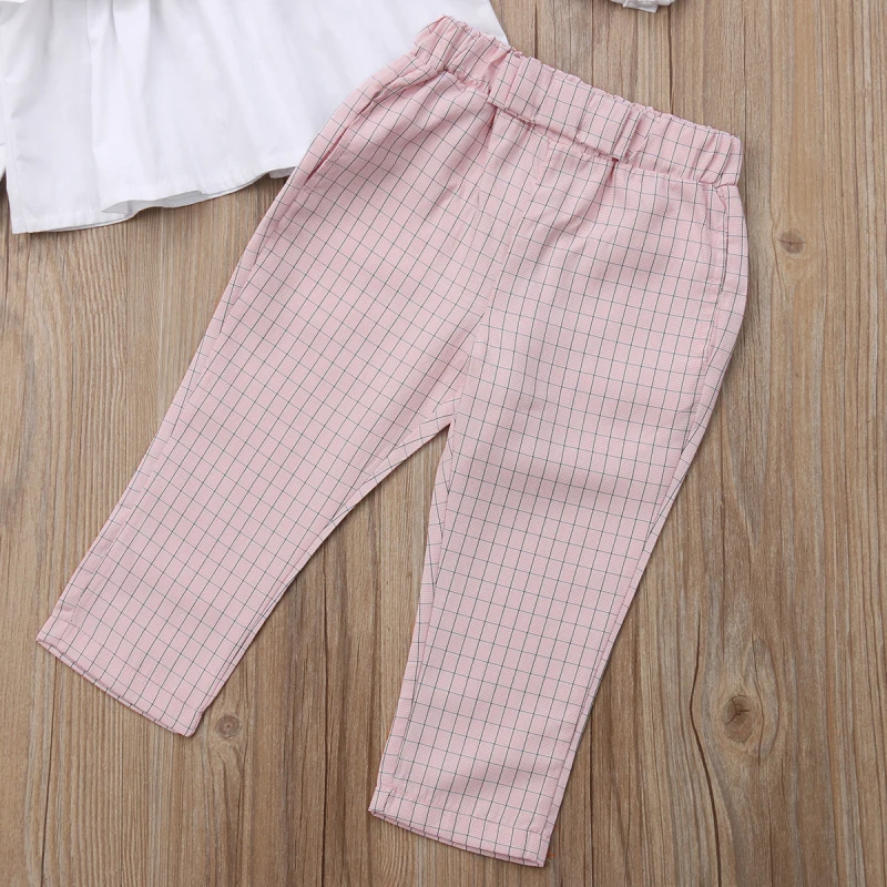 Neweat/модные детские клетчатые комплекты с оборками для маленьких девочекОдежда для детей! Высокое качество и новый 100% Основные Цвет: как на фотографии Новинка в моде Материал: Смешанный хлопокВнимание: если ваш ребенок пухленький, мы рекомендуем выбрать больший размер, спасибо. Просим перепроверять размеры детей, рост и полноту по размерной таблице перед покупкой/подачей заявки. Спасибо за понимание. Посылка включает в себя:1x топы +1x штаны