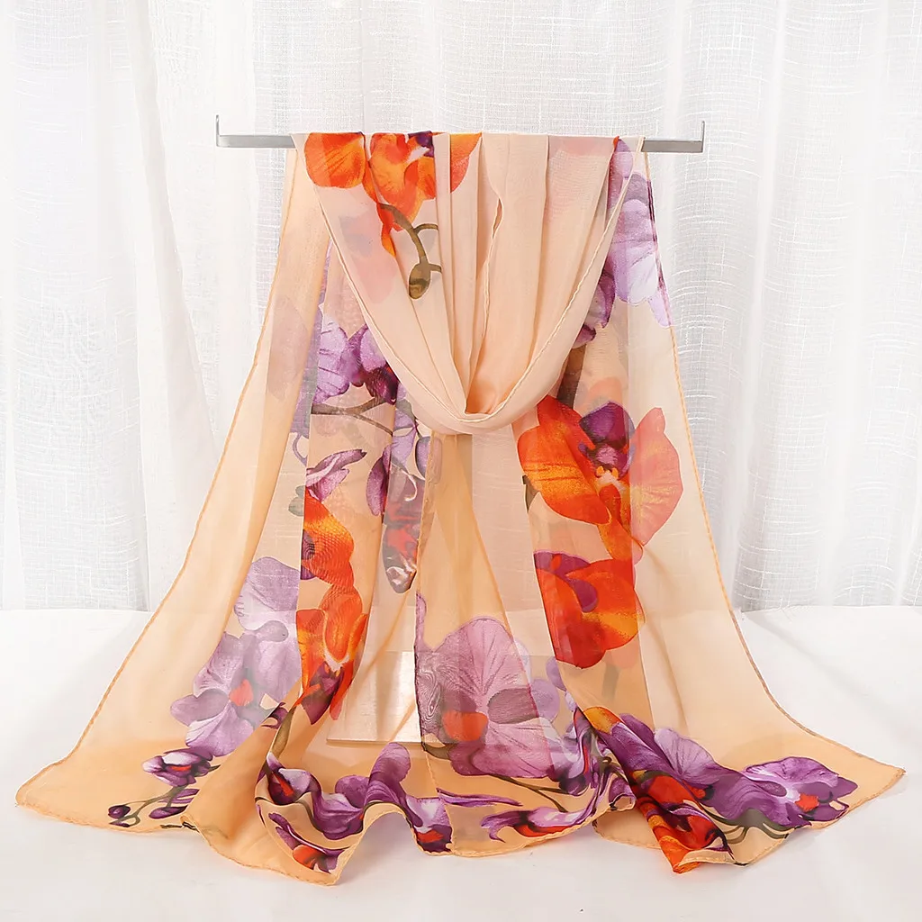 Модный женский длинный мягкий шарф с цветочным принтом, имитация шелковой шали, шарфы