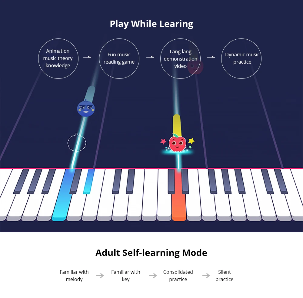 -Волшебная клавиатура с подсветкой будет светиться направляющим, с наведением освещения, вы можете быстро ознакомиться с позицией ключа, всплывая подвижная мелодия