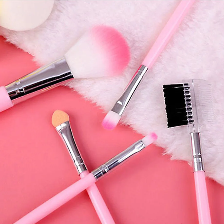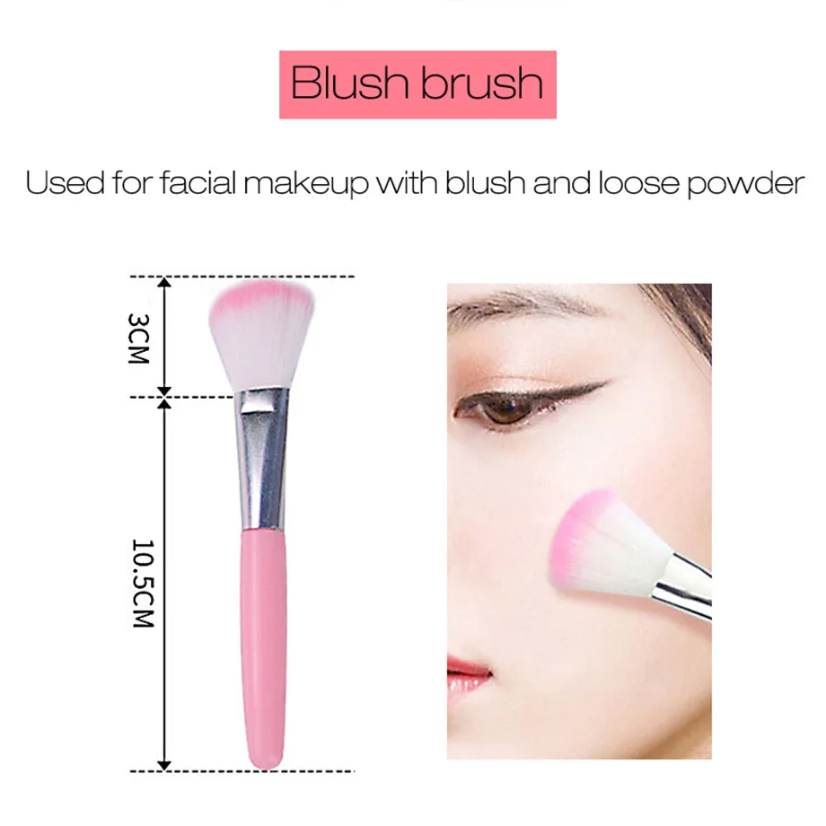 1. румяна Кисть используется для макияжа лица с румянами и сыпучим порошком 2. кисть для теней для век, используемые для большой площади тени для век раскраска 3.Lip щетка используется для рисования на форма губ для того, чтобы сделать губы с длинными рукавами, 4 штуки. тени для век rob, используемые для среднего слоя теней для век 5. кисть для бровей и ресниц 2 в 1 для формирования бровей и ресниц