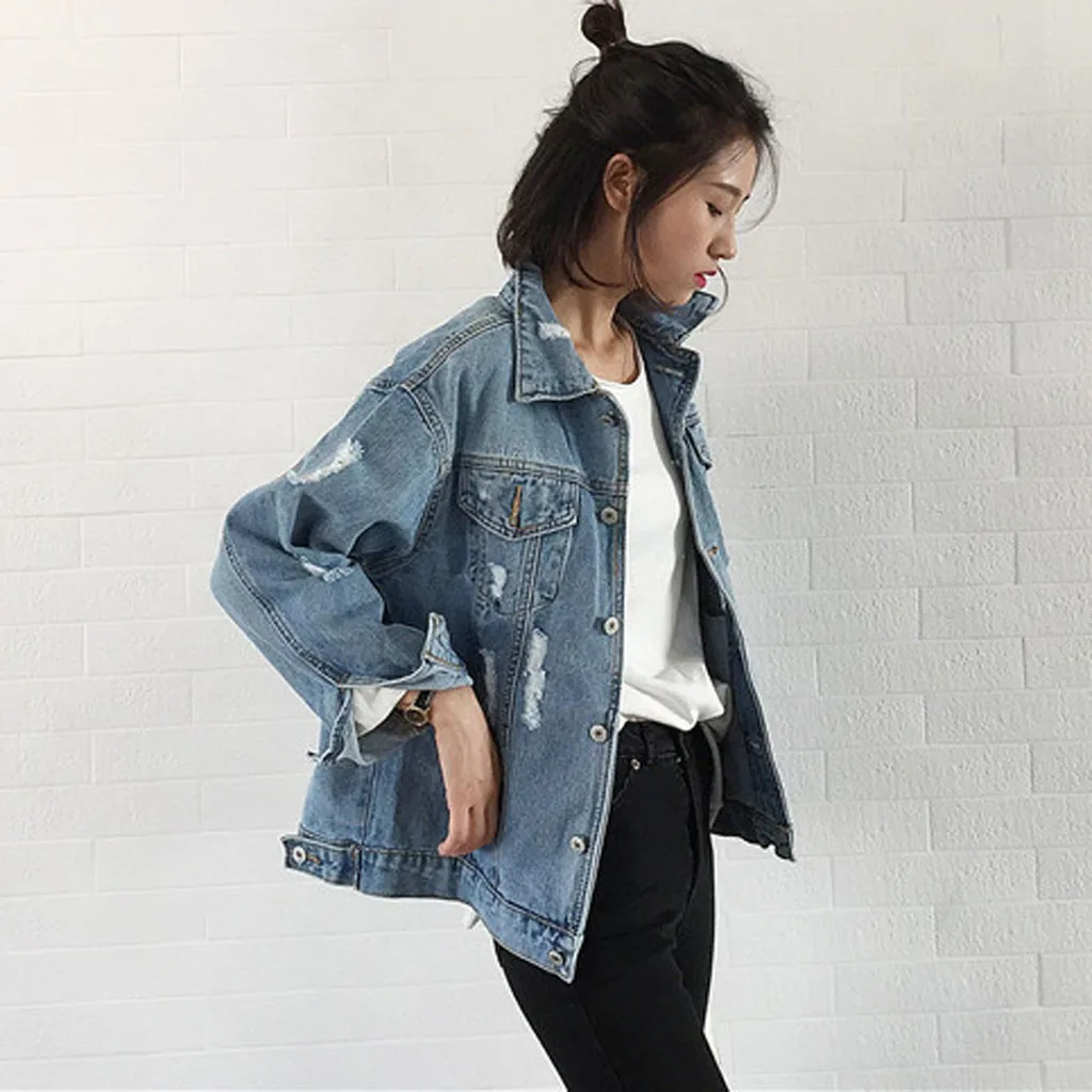Новинка 2019, Женская Базовая куртка, женская Свободная джинсовая куртка в стиле ретро, мотоциклетная куртка в стиле панк с рваными дырками, джинсовая женская верхняя одежда