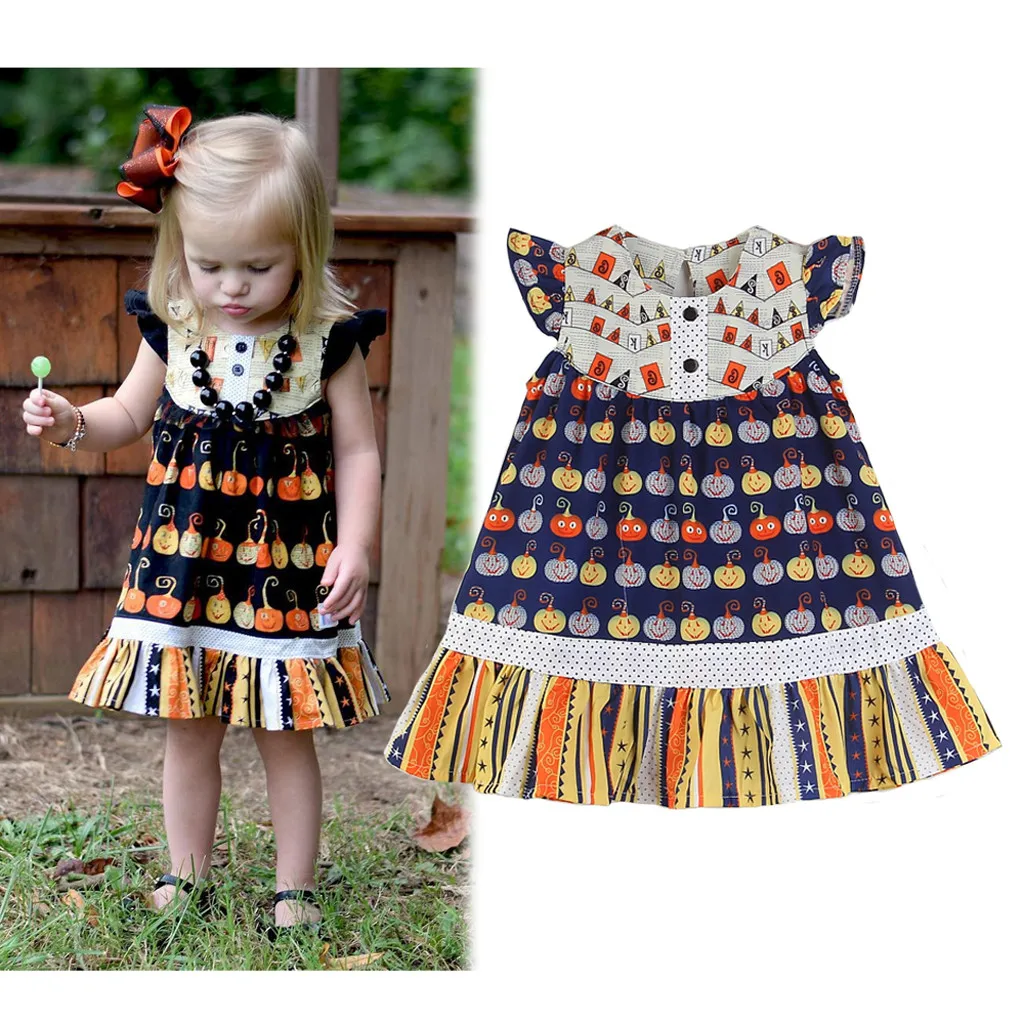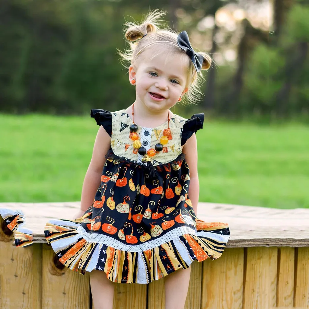 Детское платье для маленьких девочек на Хэллоуин с принтом в виде тыквы, костюм
