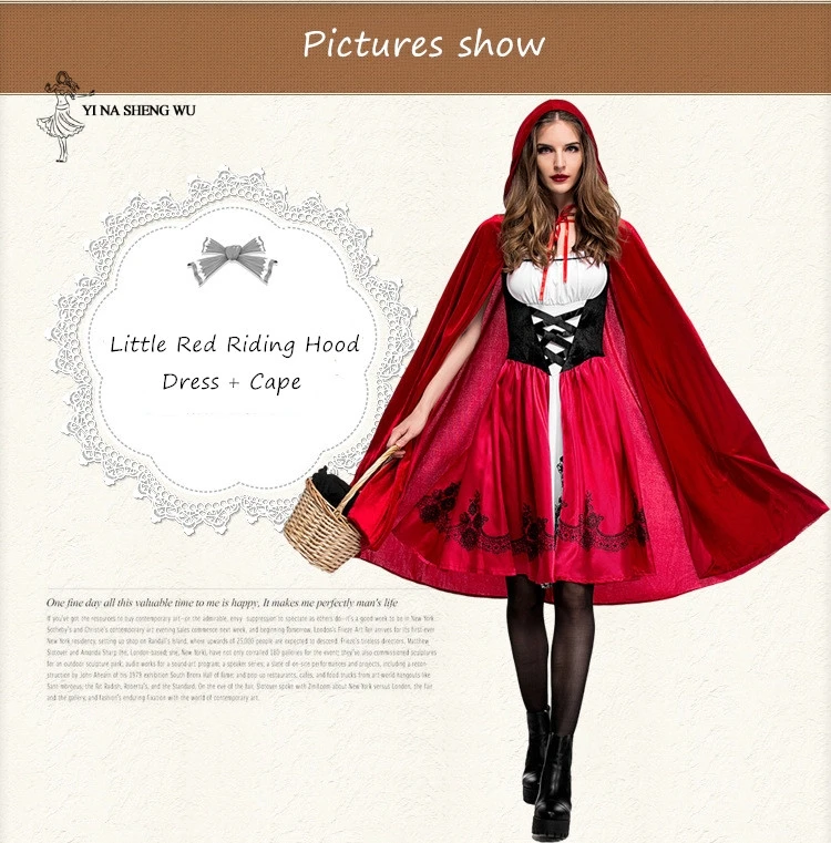 Женский красный костюм с капюшоном для верховой езды, вечерние костюмы на Хэллоуин для взрослых, костюм для костюмированной вечеринки, высокое качество, платье + плащ, костюм для сцены