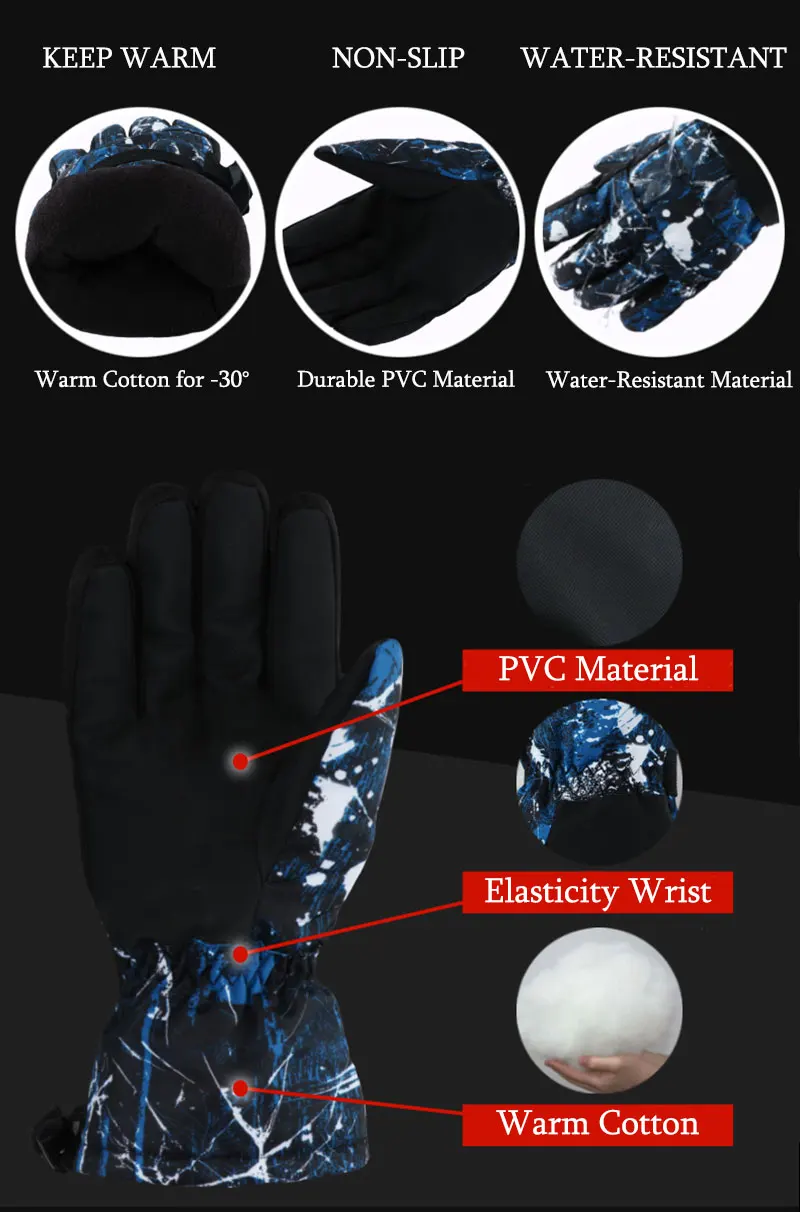 Зимние перчатки для катания на лыжах с сенсорным экраном мужские и женские