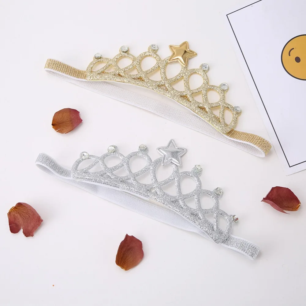 Новинка 2019 года; сезон весна-лето; 5 цветов; детская эластичная повязка на голову для девочек; однотонная лента для волос с короной и звездами для малышей; аксессуары для волос