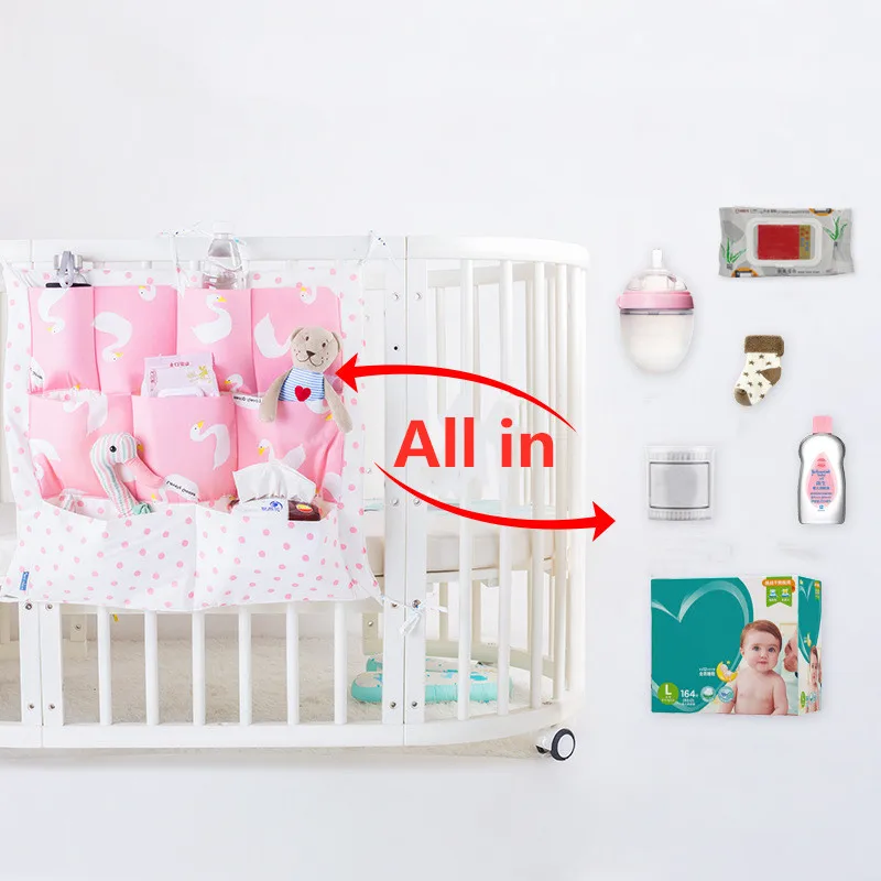 Мультяшная сумка для хранения, подвесная сумка для хранения, детская кроватка, кровать, брендовая детская хлопковая кроватка, органайзер, игрушка, подгузник, карман для кроватки, Постельный набор