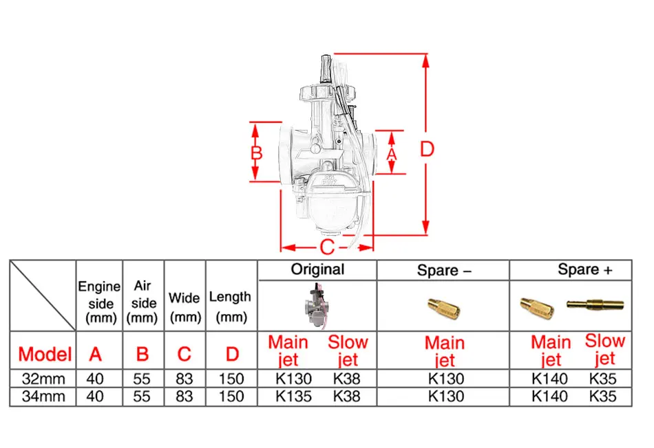 34 мм, подходит для двигателя от 125 до 250 куб. См