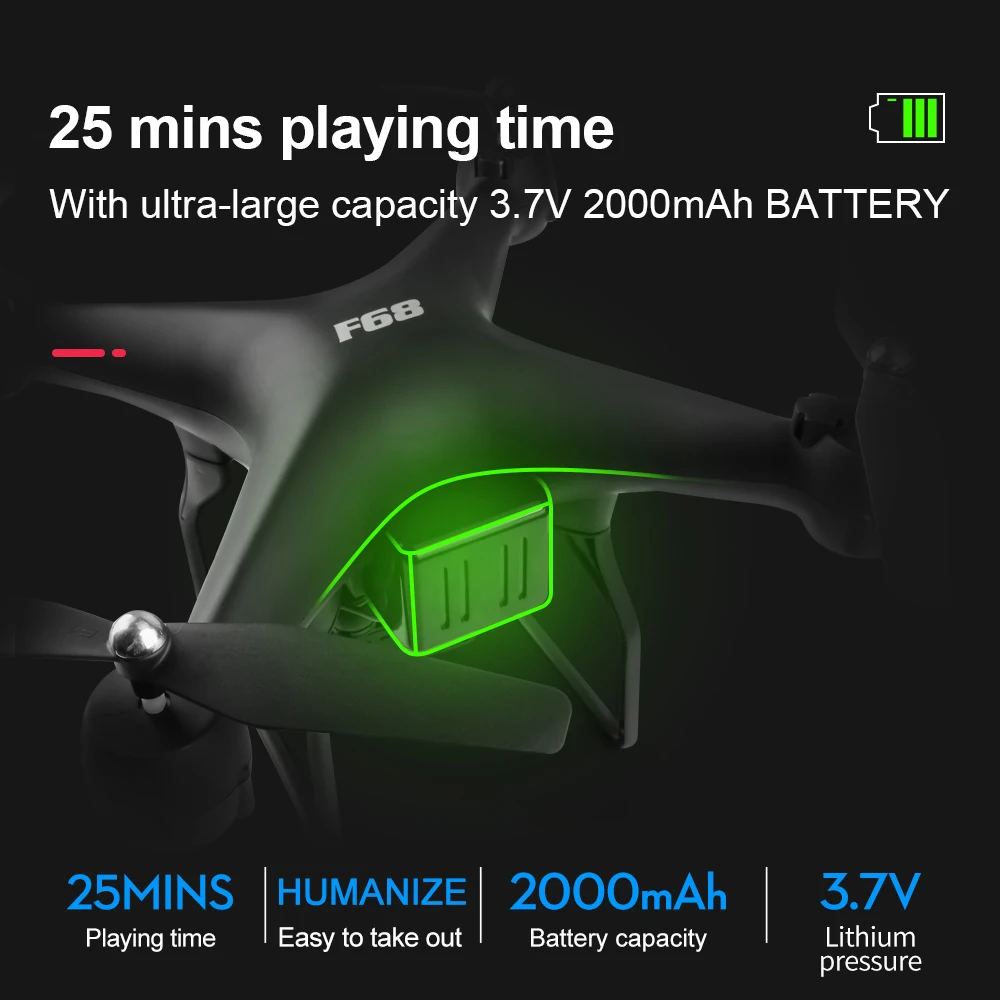 Функция: вверх/вниз, вперед/назад, поворот влево/вправо, боковой f светильник, светодиодный светильник, Безголовый режим, автоматический возврат одной кнопки, светильник Track F, режим удержания высоты, фото жестов, видео жестов