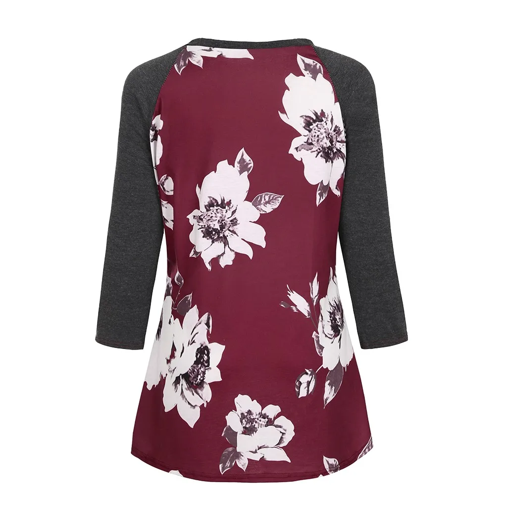 Женщины Материнство 3/4 рукав цветочные печатные кормящих Топы Футболка для грудного вскармливания