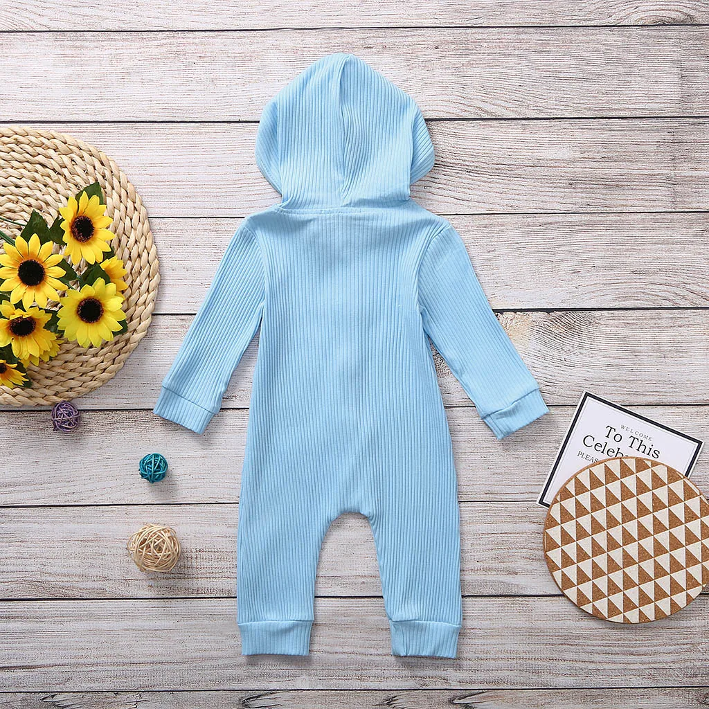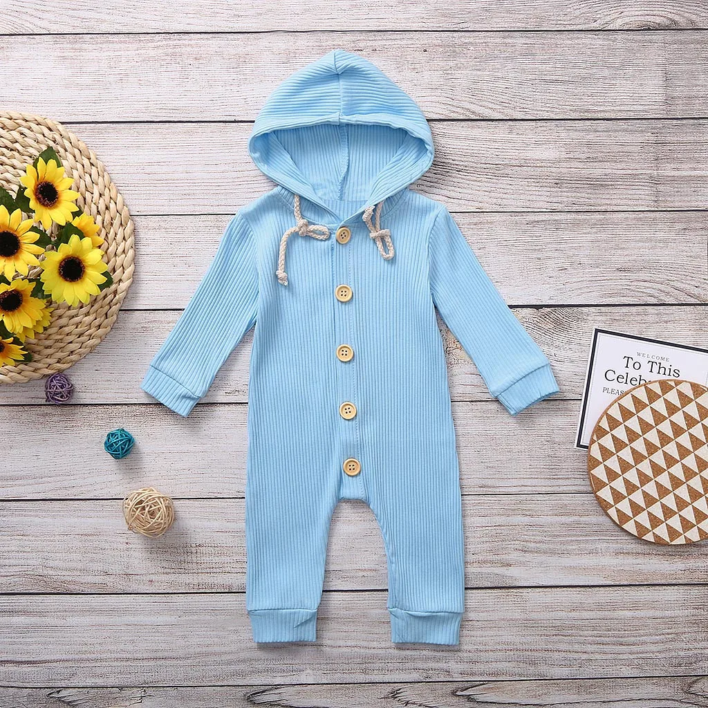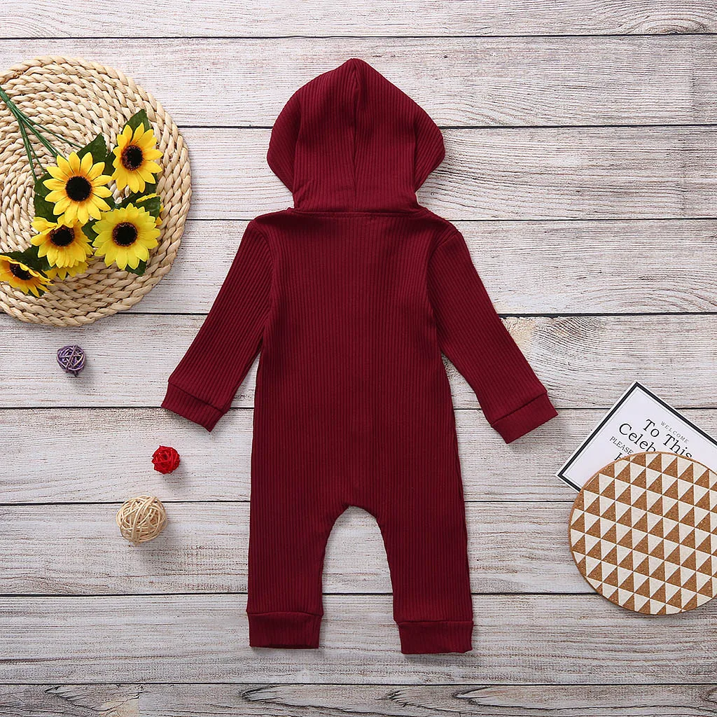 Однотонный комбинезон с капюшоном и длинными рукавами для новорожденных мальчиков и девочек