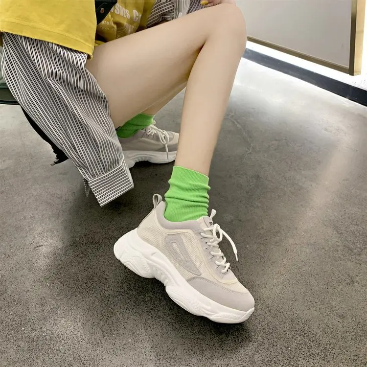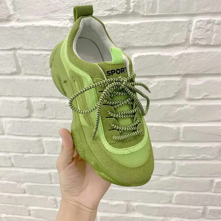 Женские кроссовки на массивной платформе желтые или зеленые спортивные толстой