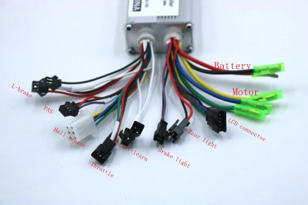 GREENTIME 24V/36V/48V 250W BLDC контроллер двигателя E-bike бесщеточный драйвер скорости и LH-100 ЖК-дисплей Номинальное напряжение: 24 В/36 В/48 в Низкая Напряжение среза: 20 Вт, 30 Вт, 40V +-0,5 V Номинальная мощность: 250 Вт/350 Вт Предельный ток: 15A +-1A 1) супер низкий уровень шума при запуске 2) Защита от низкого напряжения 3) Защита от перегрузки по току 4)E-ABS, низкий уровень тормоза 5) с разъемом PAS (работает только 5 или 6 магнитов pas) 6) с самообучающимися проводами (функция самообучения может использоваться только при наборе PAS на 2 или более) 7) с LH-100 разъемом Большой палец дроссельной заслонки LH-100 дисплея и дроссельной заслонки на контроллере не может работать одновременно Этот контроллер и ЖК-дисплей должны подключить датчик Холла двигателя и дроссельную заслонку! И ограничение скорости может работать как для педалей, так и для дроссельной заслонки. Все наши стандартные ЖК-дисплеи и контроллеры устанавливают Скорость 1-5 для педалей и дроссельной заслонки, все стандартные наборы работают так. Если вы хотите изменить скорость 1-5 только для PAS, вы должны сообщить нам перед размещением заказа. Мы можем добавить сигнал тревоги и крейсерскую функцию по запросу клиента.