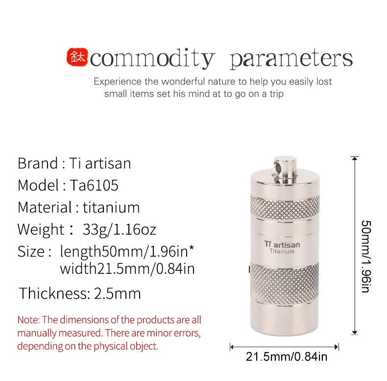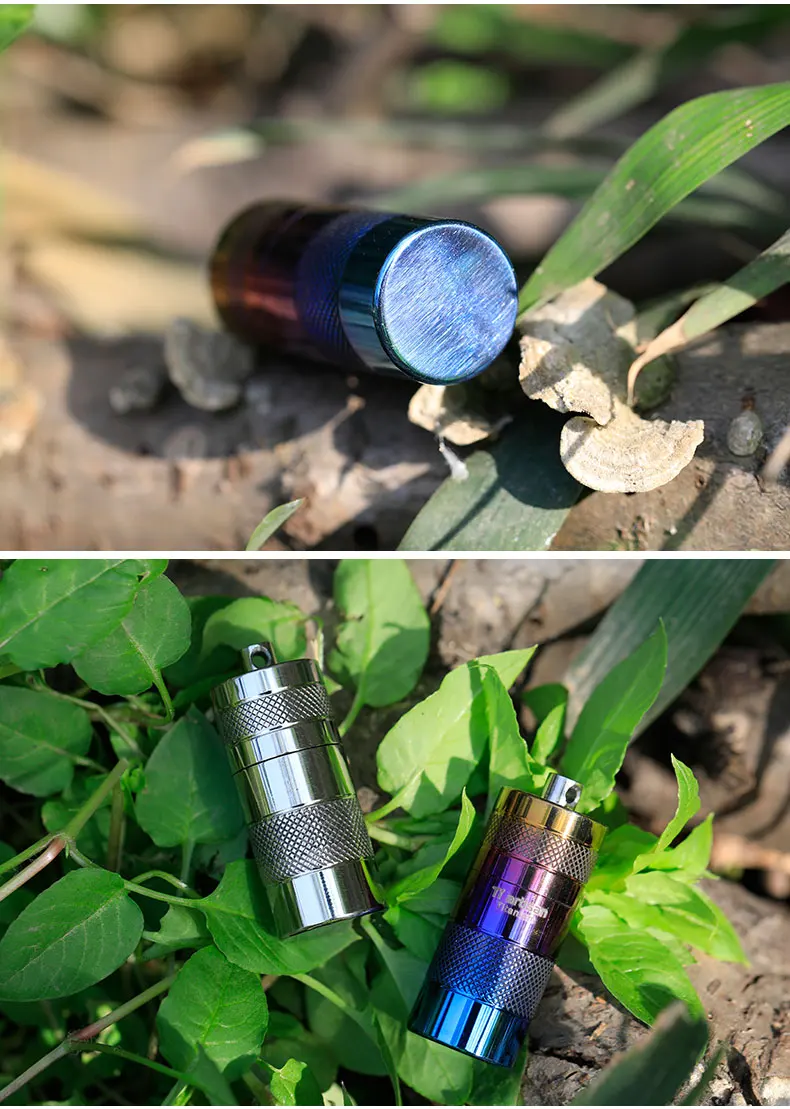 Этот новый брелок для таблеток красиво сделан из титана TC4, нескользящая крышка с резиновым уплотнительным кольцом позволяет легко открывать и закрывать, сохраняет ваши таблетки, спички или другие материалы в нем сухие во время активного отдыха.