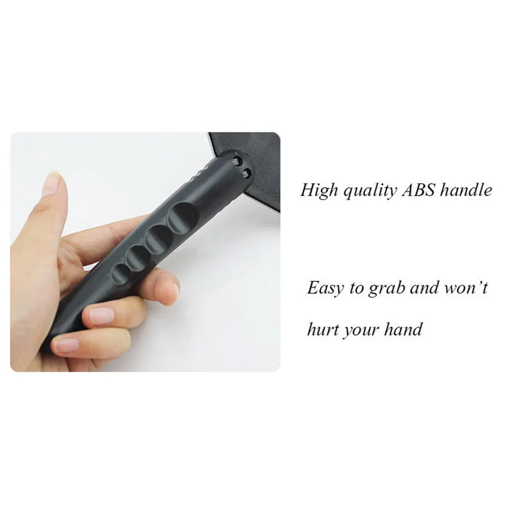 Пластиковая головка лопаты для домашних животных с расширяющейся поверхностью позволяет легко удалить куски снега или льда и не оставляет следов на вашем автомобиле.