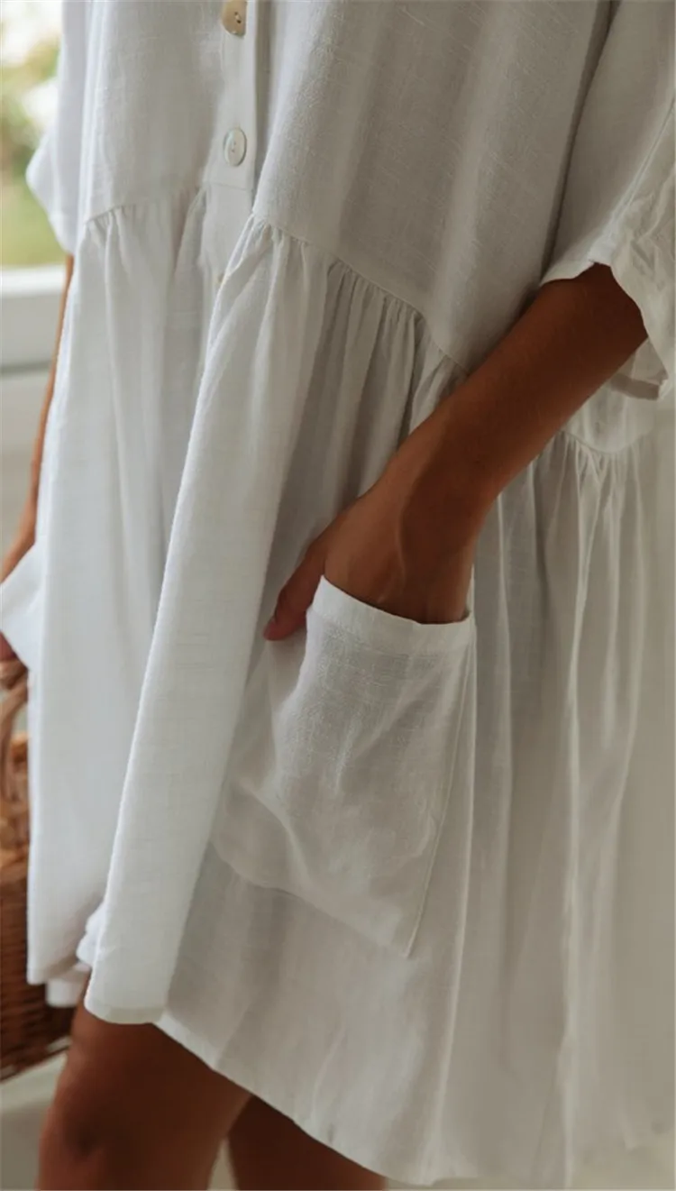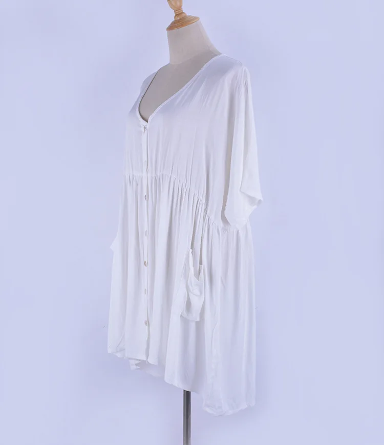 Женское летнее пляжное платье-рубашка, однотонное хлопковое купальное бикини, накидка, пляжная одежда с глубоким v-образным вырезом, купальник большого размера