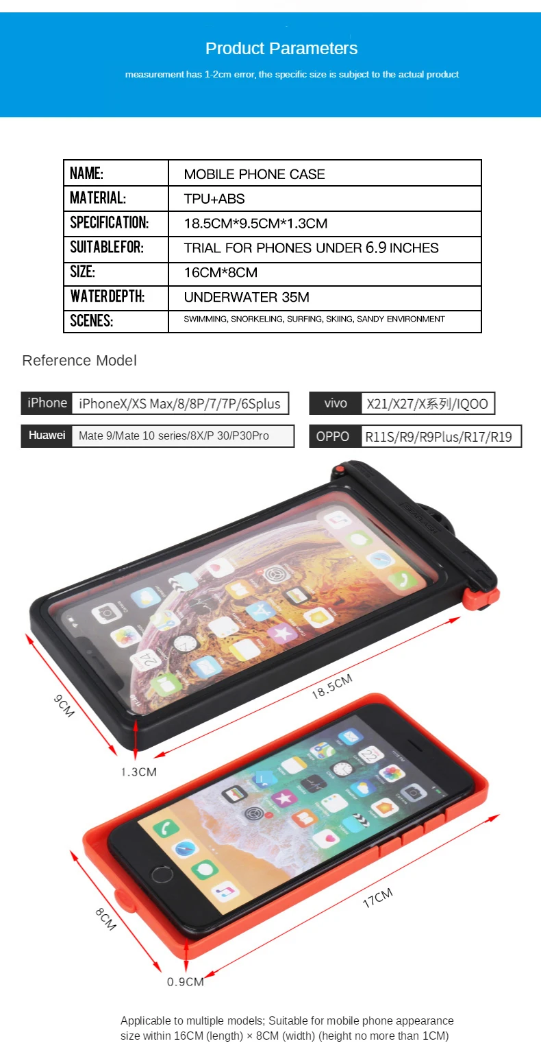 Queshark анти-падающая водонепроницаемая сумка для мобильного телефона, чехол для плавания, держатель для телефона, подводная герметичная Водонепроницаемая сенсорная сумка ниже 6,9 дюймов