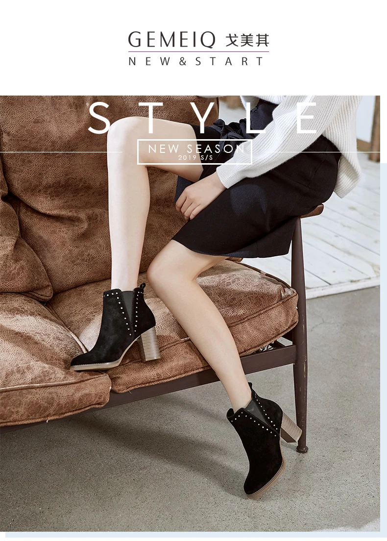 Женские ботильоны на квадратном каблуке короткие ботинки с плюшевой подкладкой
