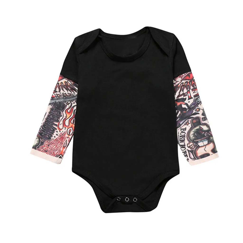 Комбинезон в стиле пэчворк с длинными рукавами и принтом тату для новорожденных мальчиков; Сезон осень-зима; Детский комбинезон из органического хлопка; Одежда для малышей; Новинка