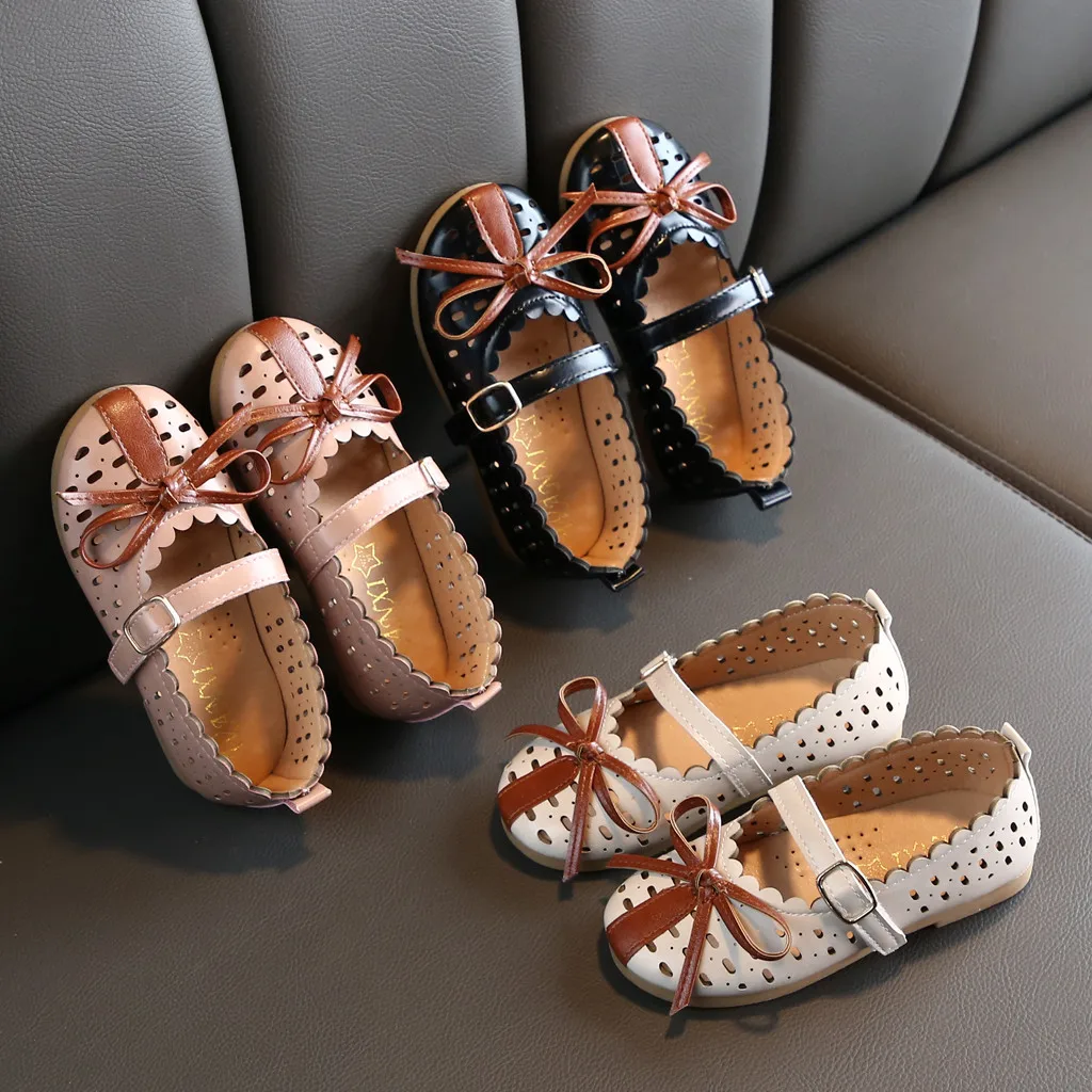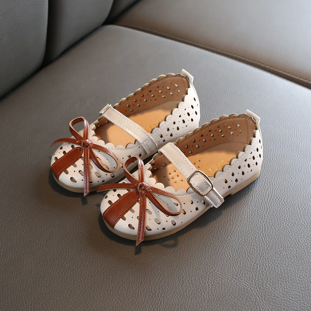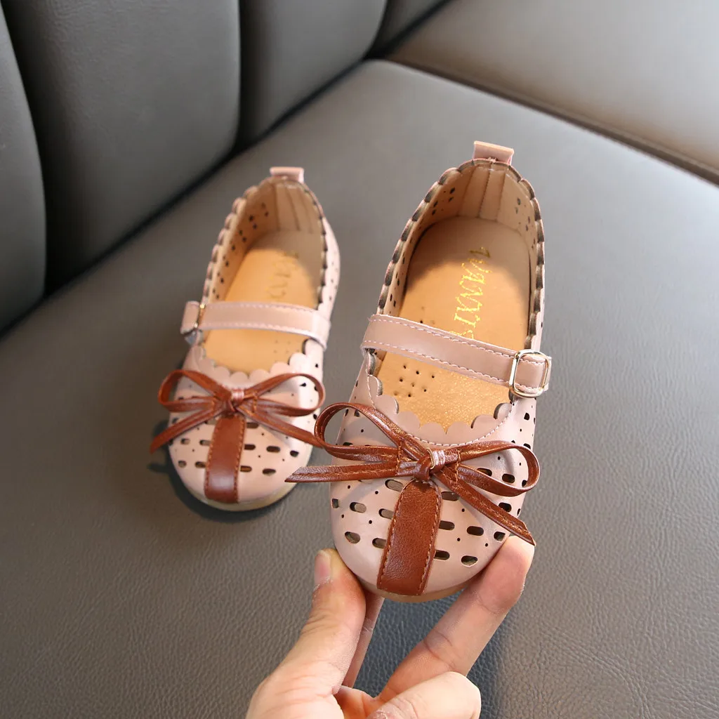 Для девочекОбувь принцессыТонкие сандалии с вырезами и бантом для маленьких детей