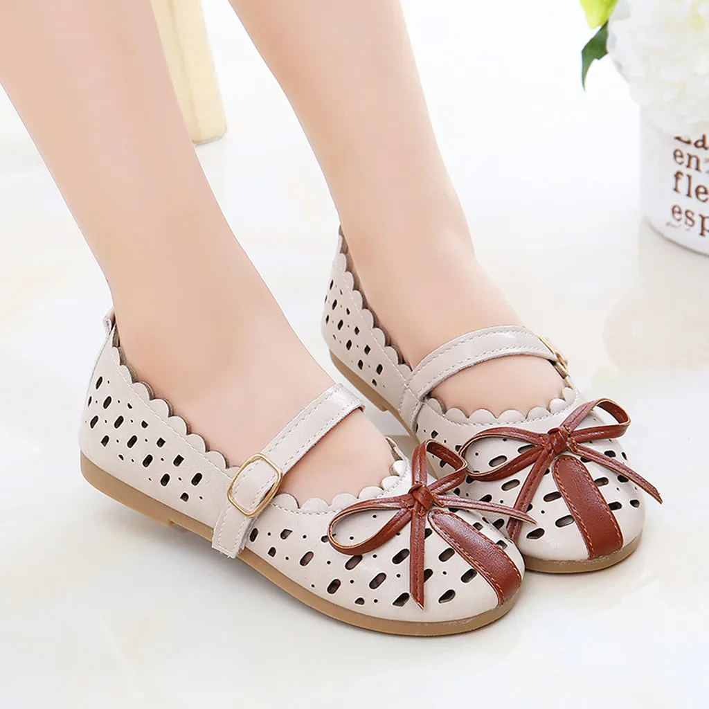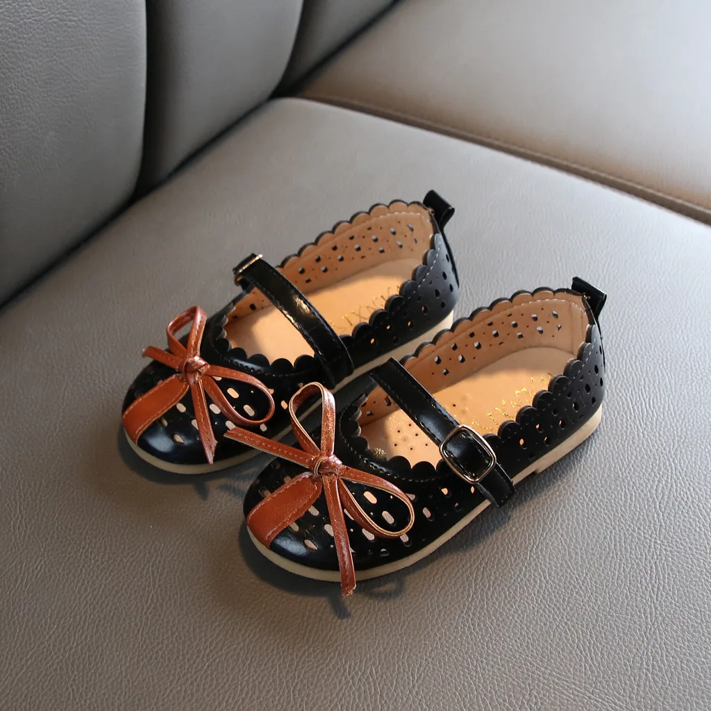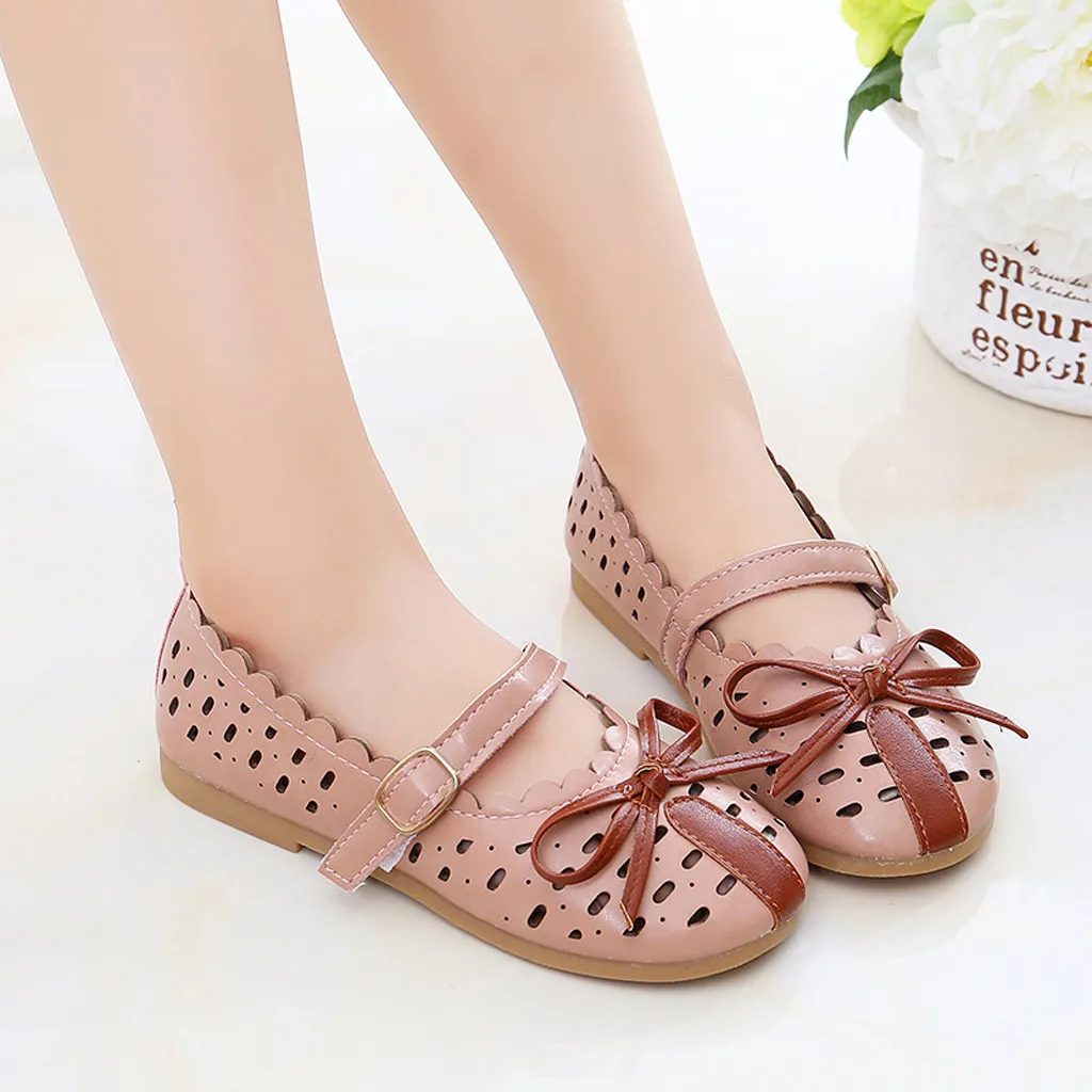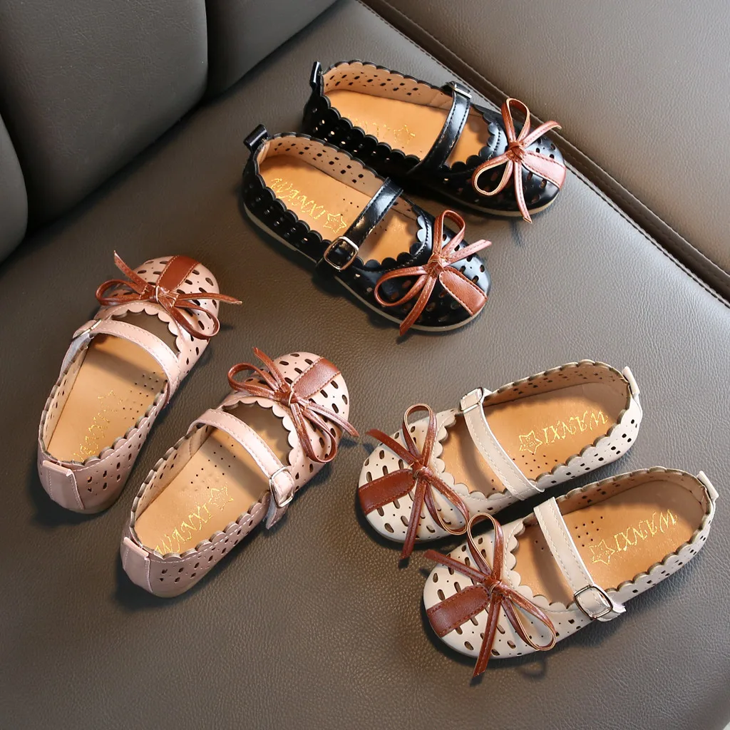 Для девочекОбувь принцессыТонкие сандалии с вырезами и бантом для маленьких детей