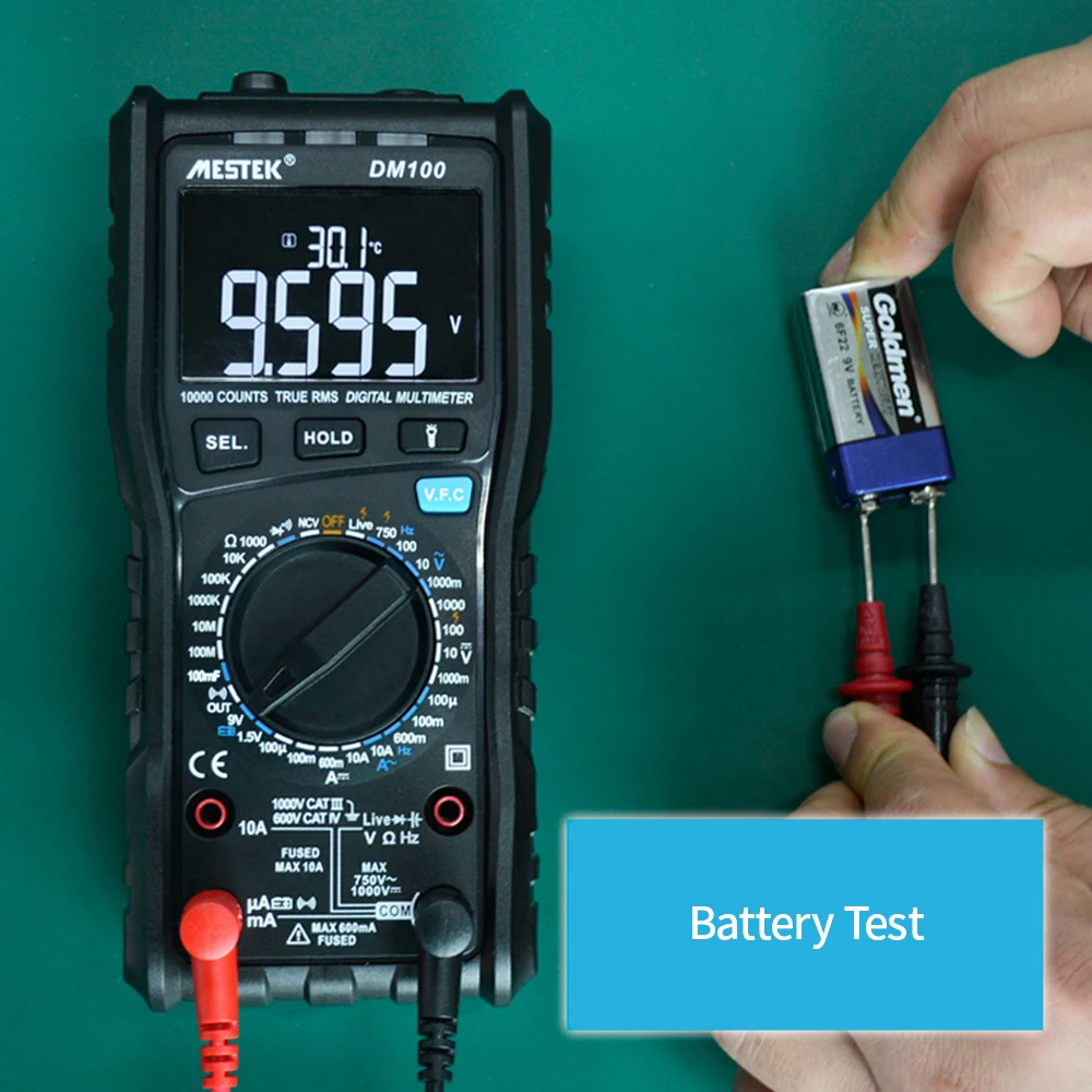 1 кГц реальное эффективное измерение, измерение 1,5 В/9 В напряжение батареи с нагрузкой.