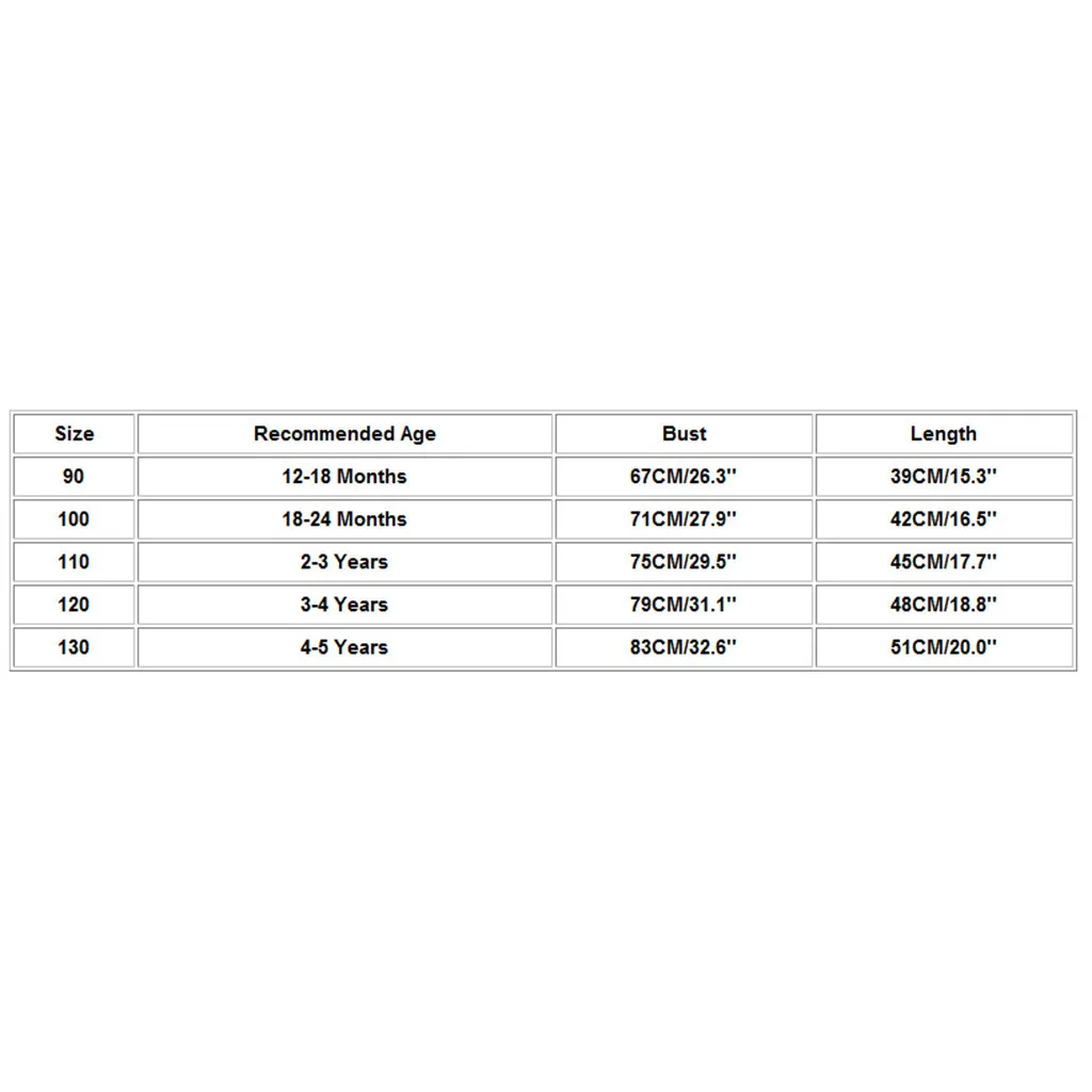 | Размер | Рекомендуемый возраст | Бюст | Длина |
