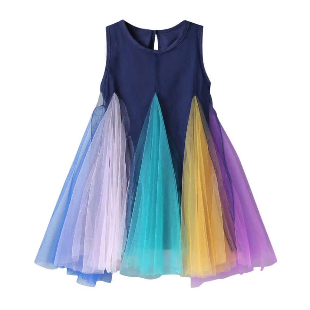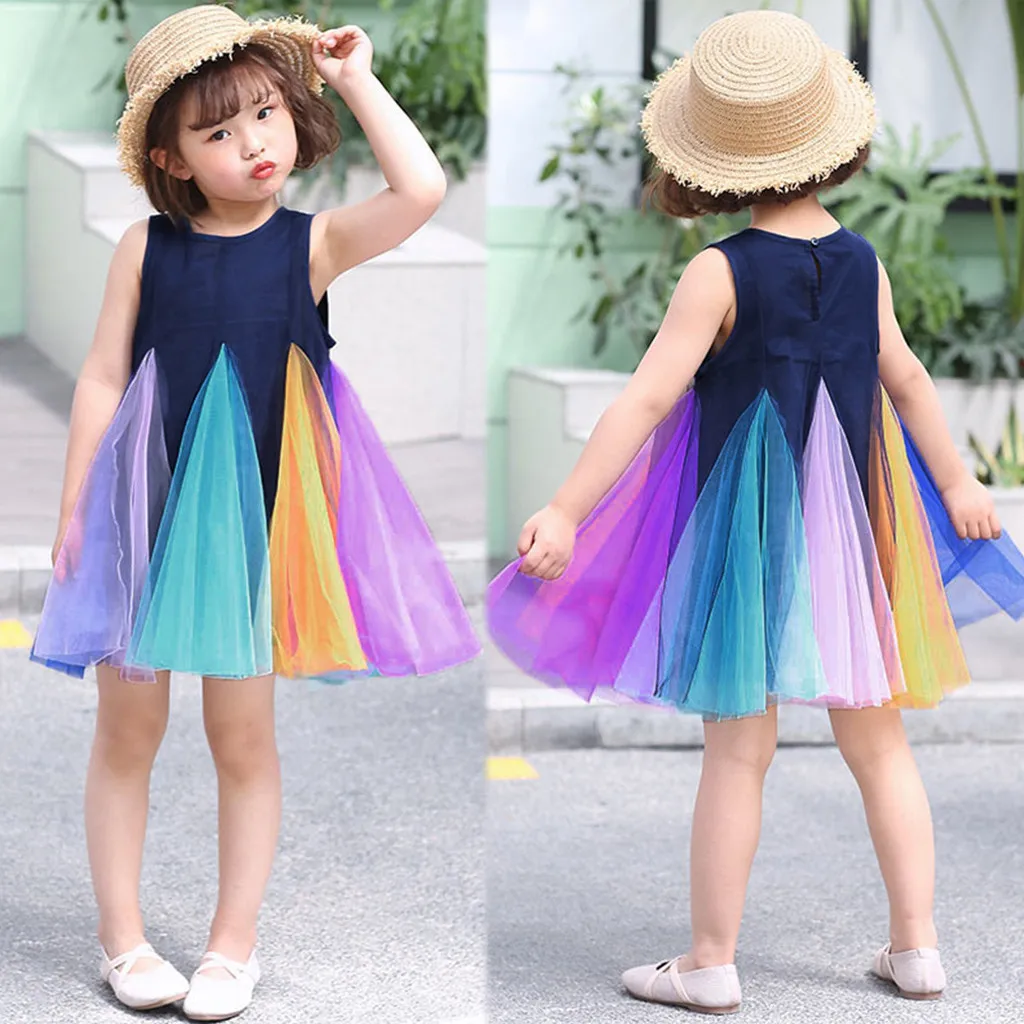 Радужное платье без рукавов для маленьких девочек; платья с фатиновой юбкой; одежда