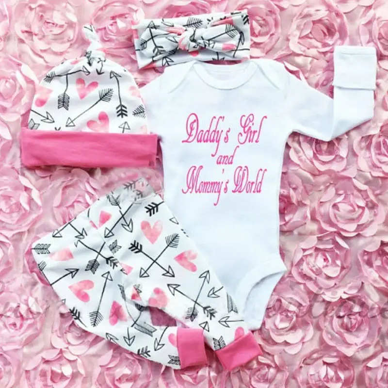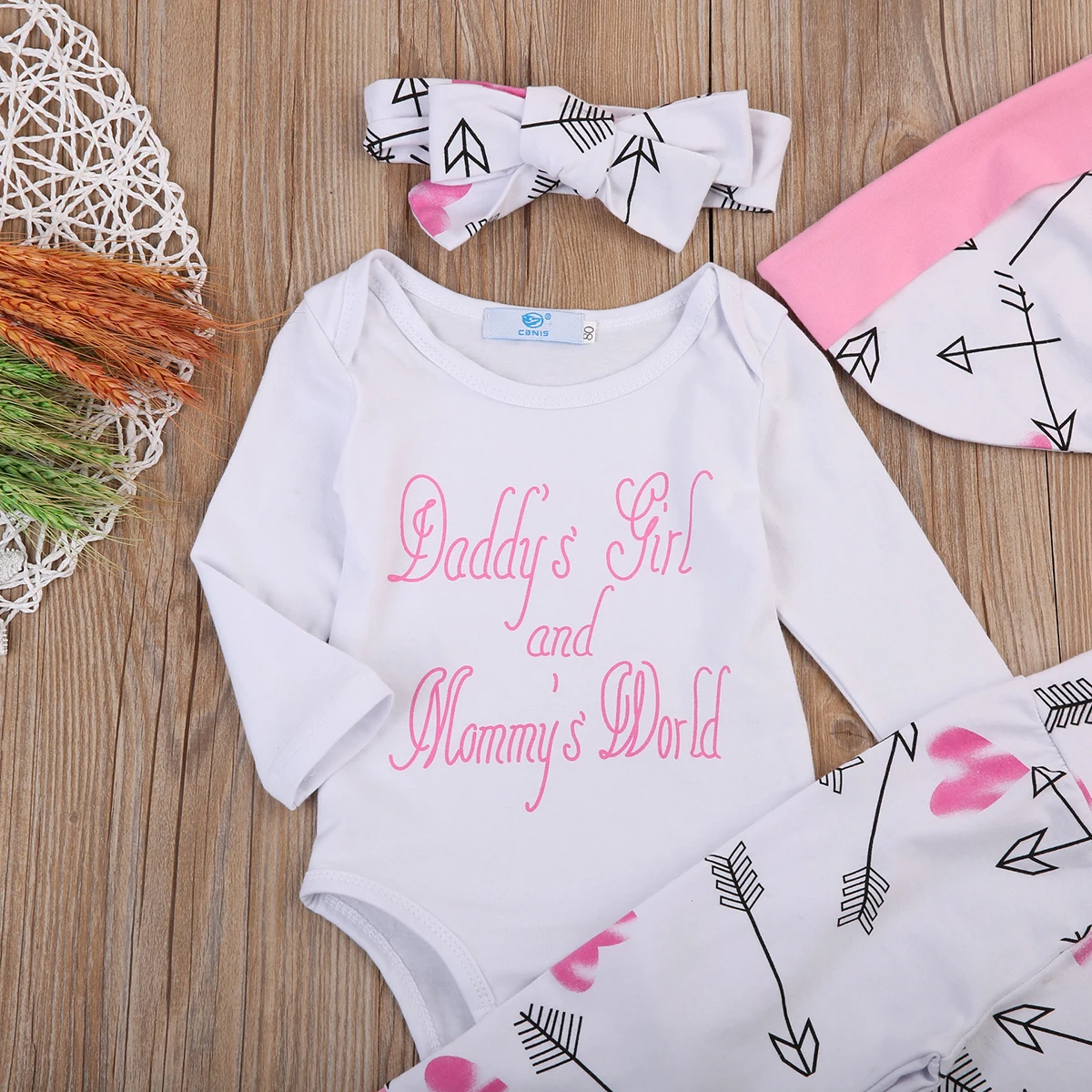 Новейшая модная одежда для маленьких девочек! Высокое качество и абсолютно новый 100% Основной цвет: как на картинке Новинка в моде Материал: 100% хлопокОбратите внимание: если ваш ребенок пухленький, мы рекомендуем выбрать больший размер, спасибо. Просим перепроверять размеры детей, рост и полноту по размерной таблице перед покупкой/подачей заявки. Спасибо. Посылка включает в себя:1 комбинезон + 1 штаны + 1 повязка на голову + 1 шапка Таблица размеров:
