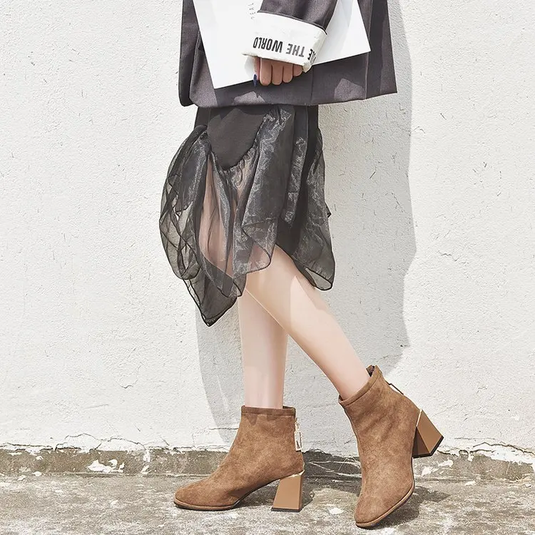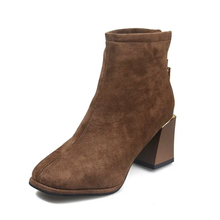 Модные женские зимние сапоги из замши удобные теплые плюшевые женская обувь с