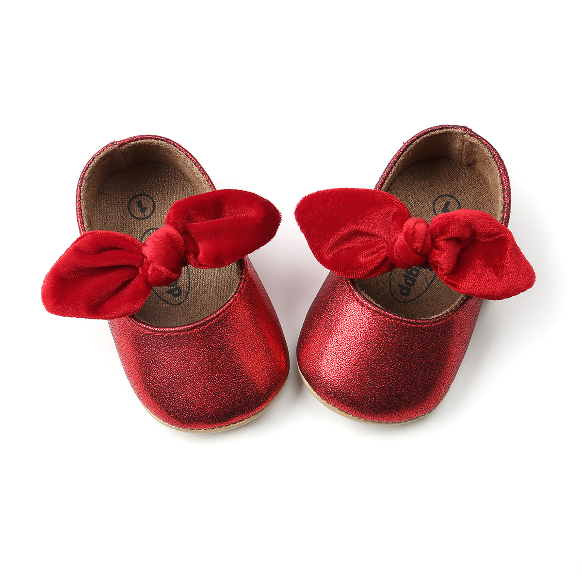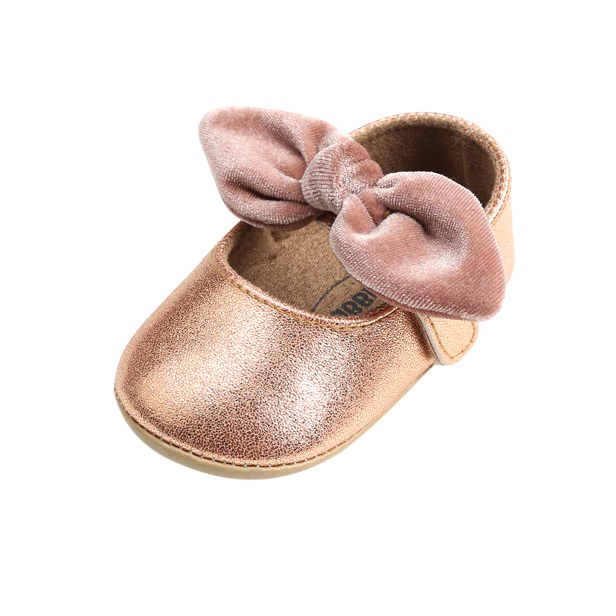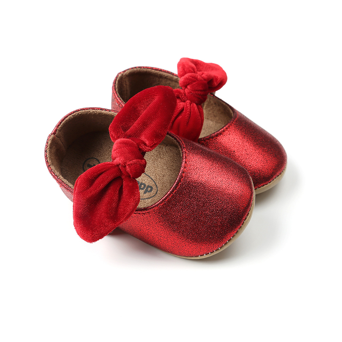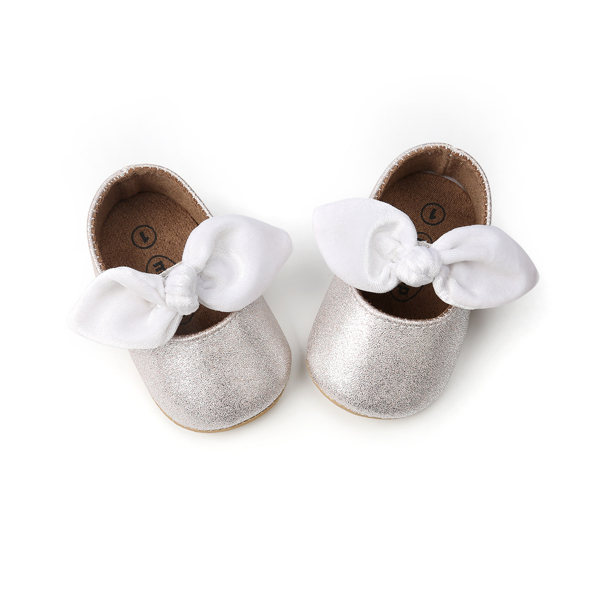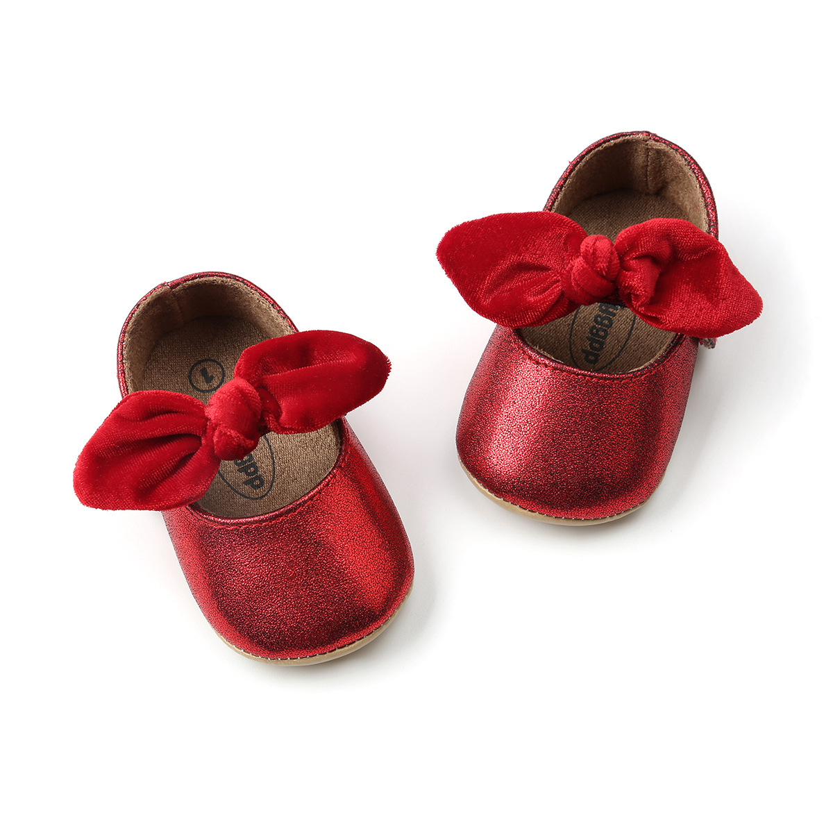 Туфли Mary Jane на плоской подошве для маленьких девочек 0-18 месяцев; нескользящие туфли принцессы с резиновой подошвой и бантом; детские мокасины