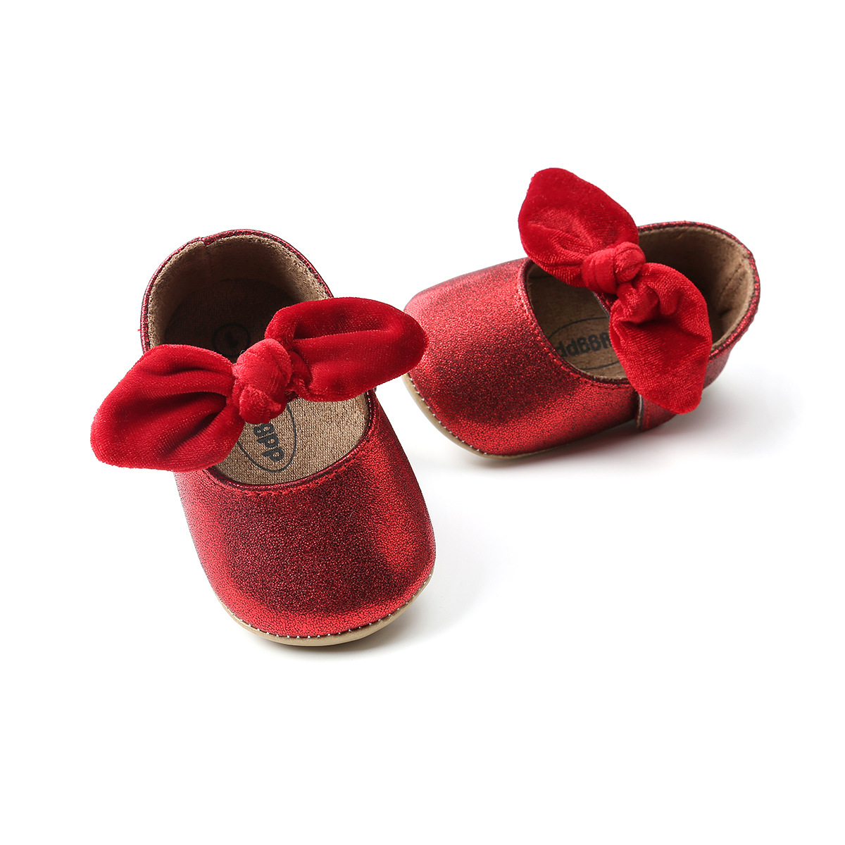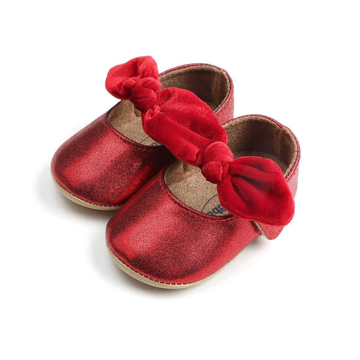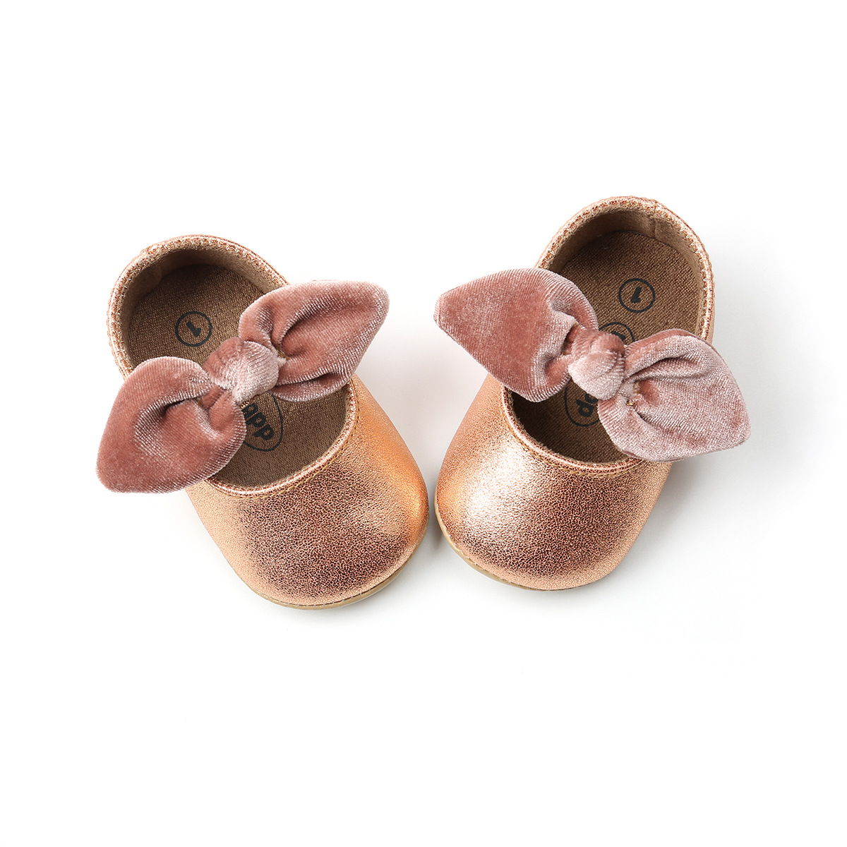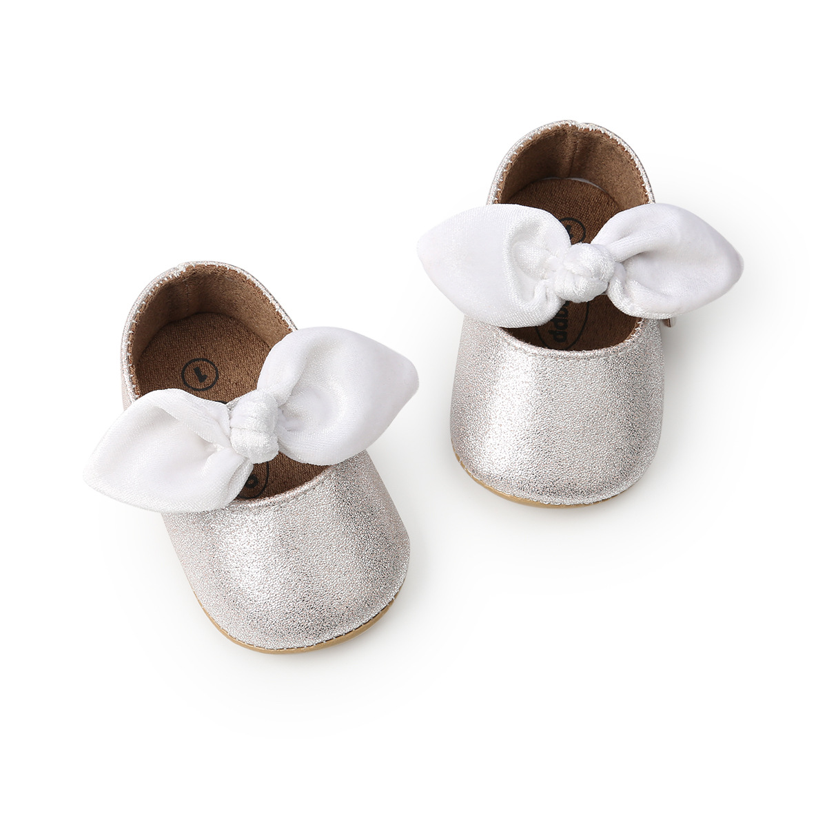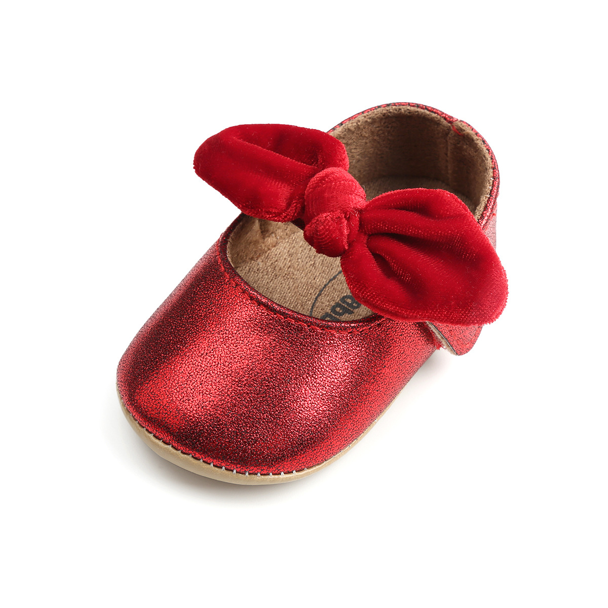 Туфли Mary Jane на плоской подошве для маленьких девочек 0-18 месяцев; нескользящие туфли принцессы с резиновой подошвой и бантом; детские мокасины