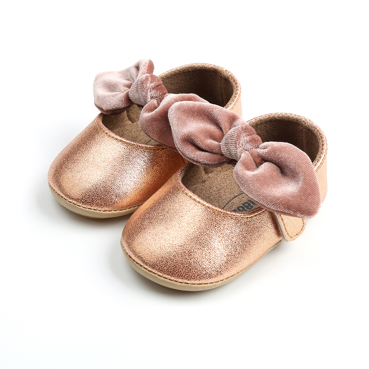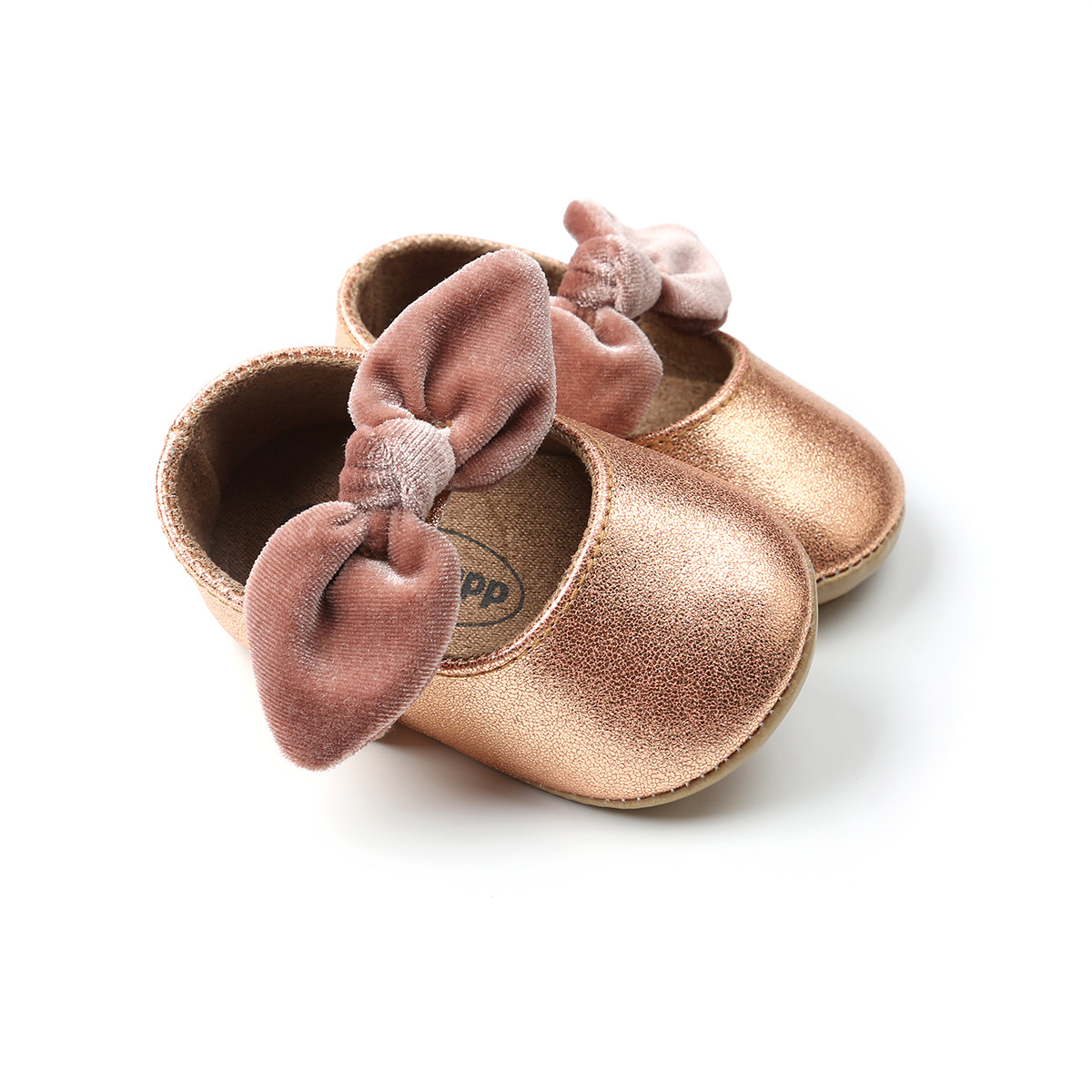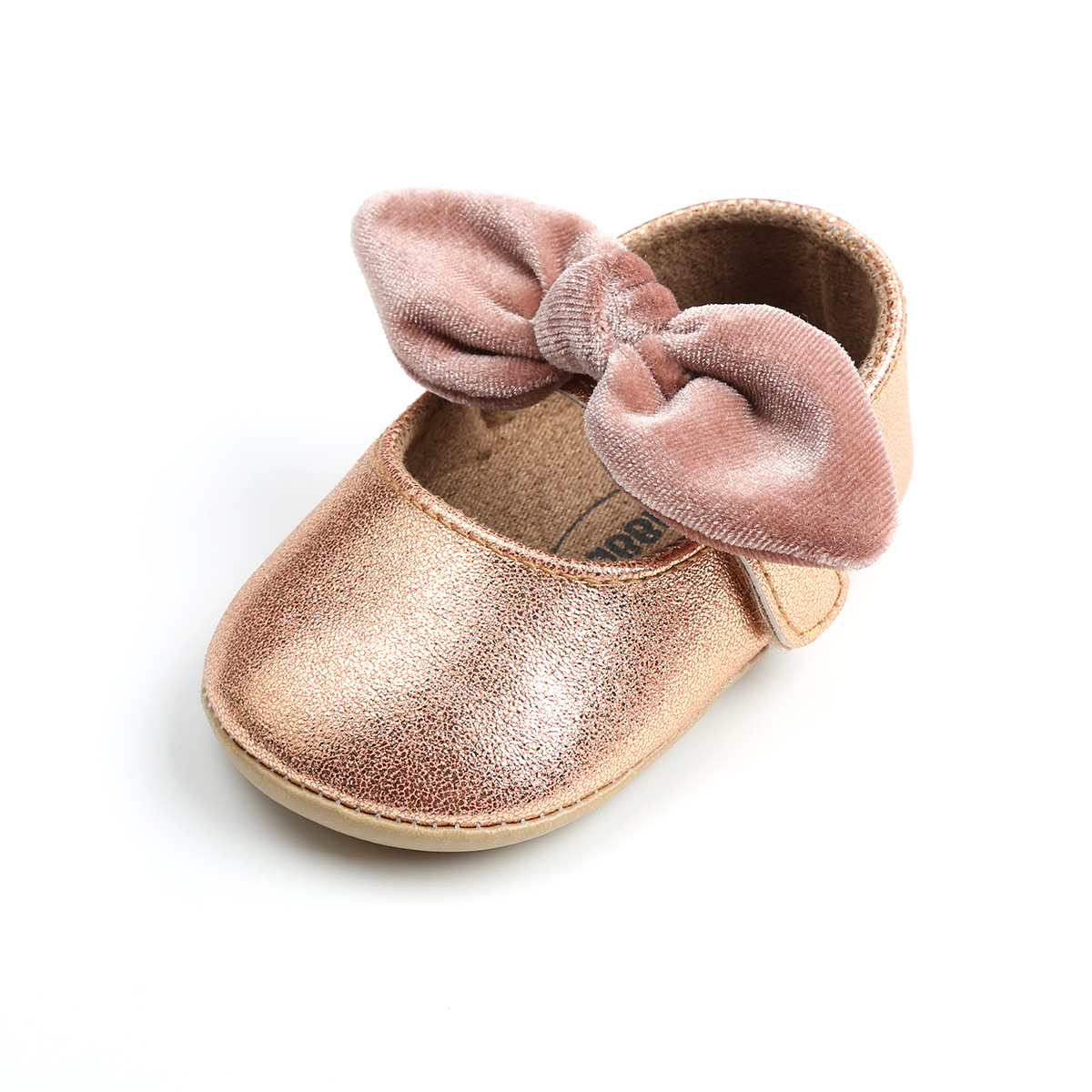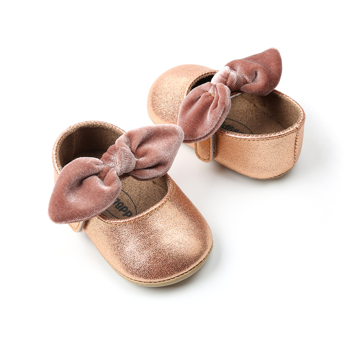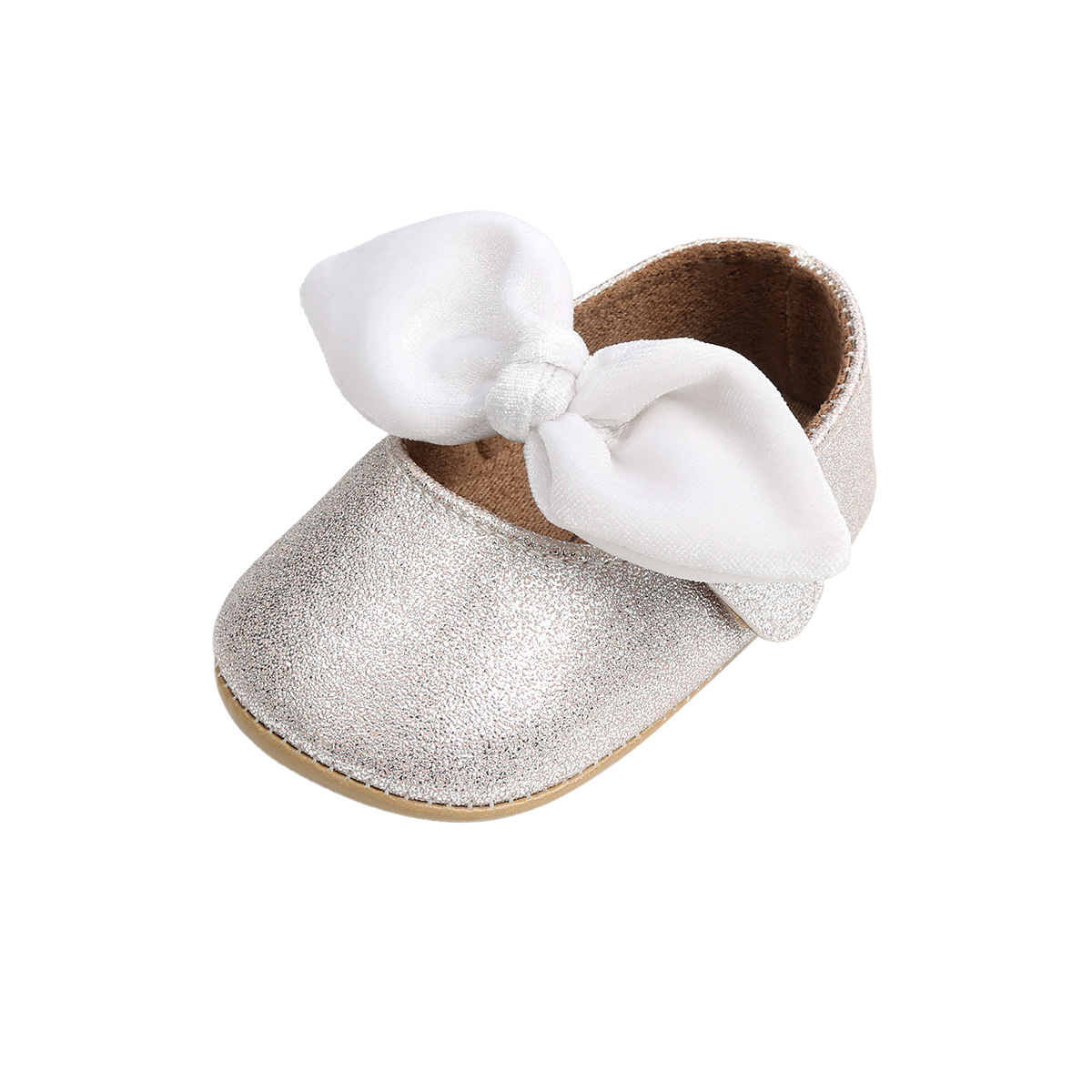 Туфли Mary Jane на плоской подошве для маленьких девочек 0-18 месяцев; нескользящие туфли принцессы с резиновой подошвой и бантом; детские мокасины