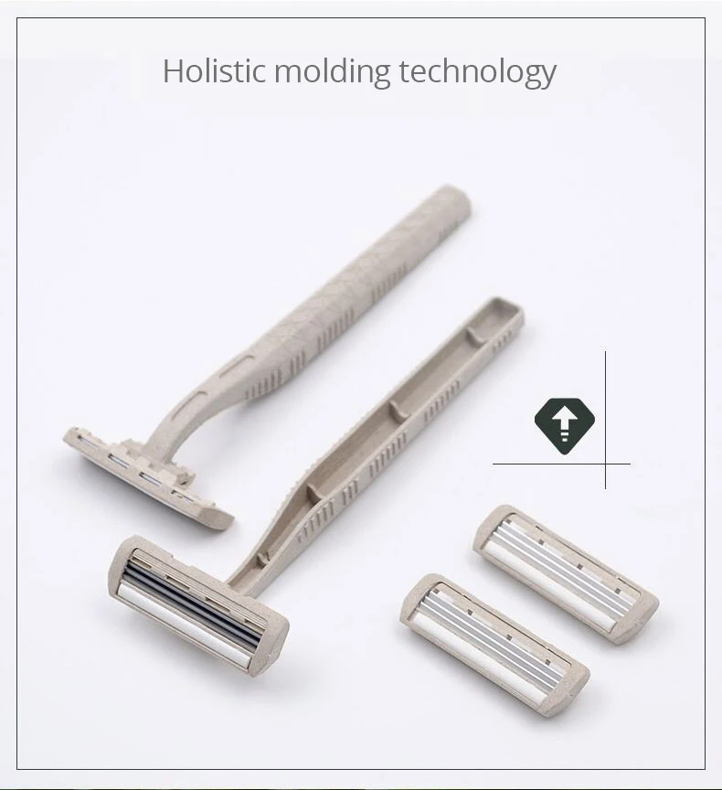 Одноразовая бритва из бамбукового волокна 3 лезвия обеспечивают гладкое и закрытое бритье нескользящая ручка и смазывающая полоска портативная Женская бритва