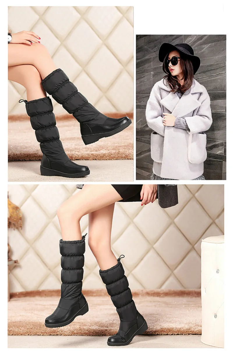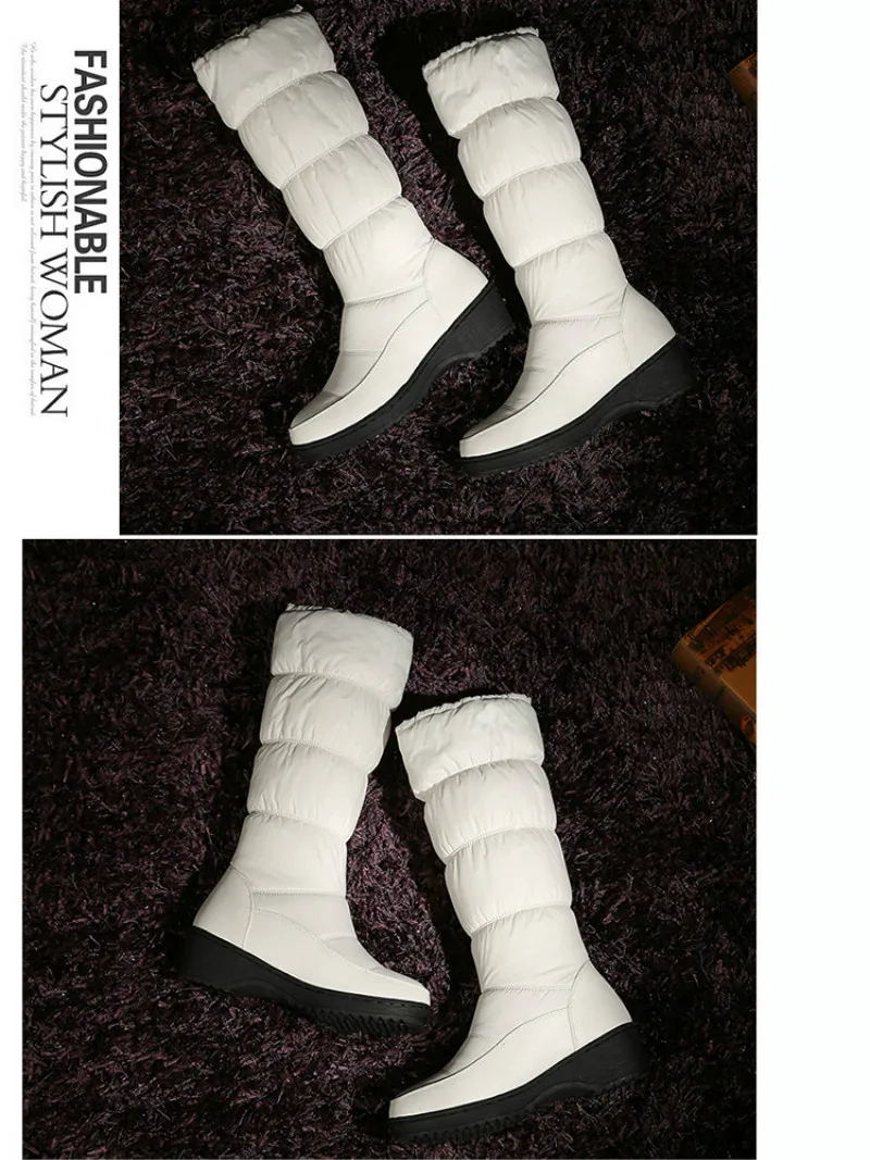Женские зимние сапоги на меху; Женская зимняя обувь; Теплые Нескользящие белые водонепроницаемые высокие сапоги на платформе; Модная обувь; Botas Mujer; HVT437; 2019