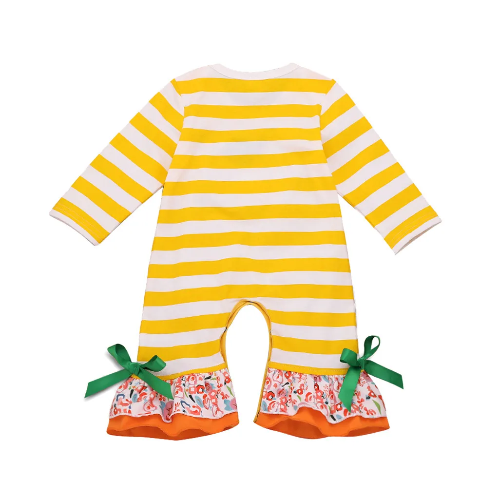 Детские Полосатые комбинезоны с рюшами и тыквой для маленьких девочек на Хэллоуин, детская одежда