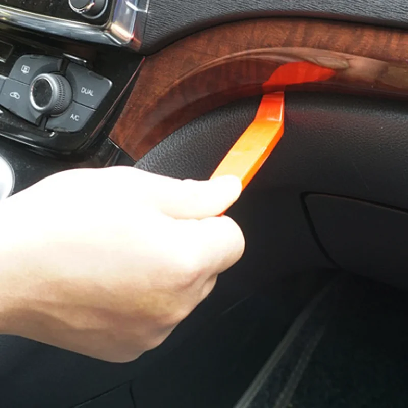 Sales unit: 1 pcsProduct size: 14cmProduct material: plasticProduct color: orangeProduct net weight (g): 8.8 gramsApplicable models: GeneralApplicable parts: installation audio, door light, main disassembly area, harder seamFeatures: 1. Environmentally friendly non-toxic elastic high quality plastic2. Professional plastic removal tool3. Prevent scratching and damage to the car surface