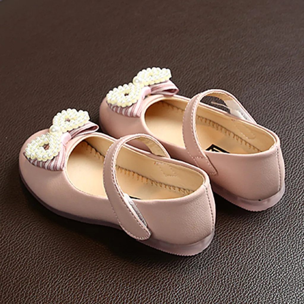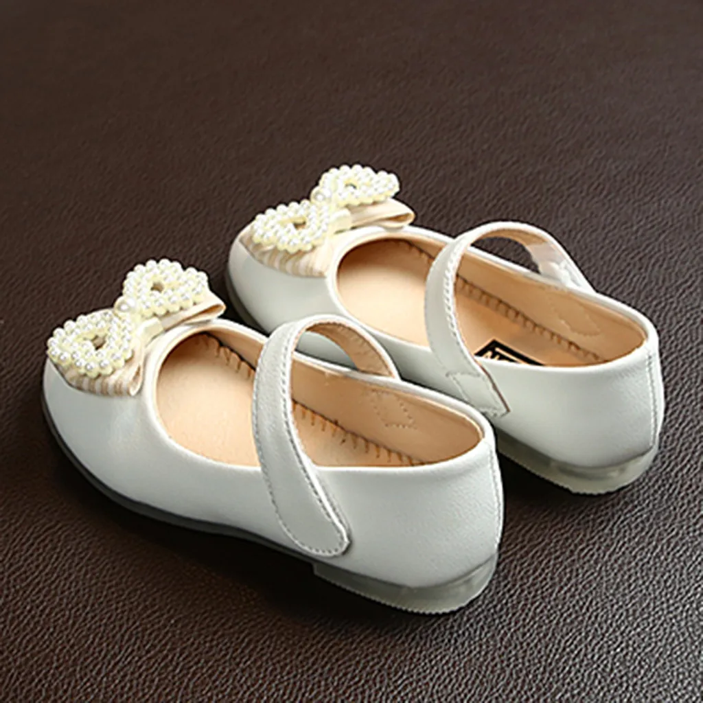 Кожаные туфли принцессы с жемчужинами и бабочкой для маленьких девочек