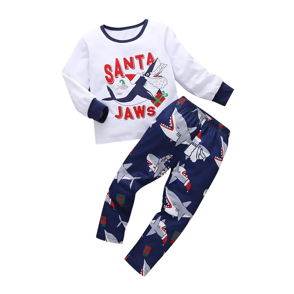 Пижама с героями мультфильмов для маленьких мальчиков и девочек, одежда для сна, комплект из рождественской футболки и штанов
