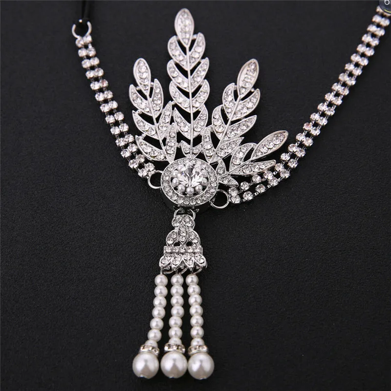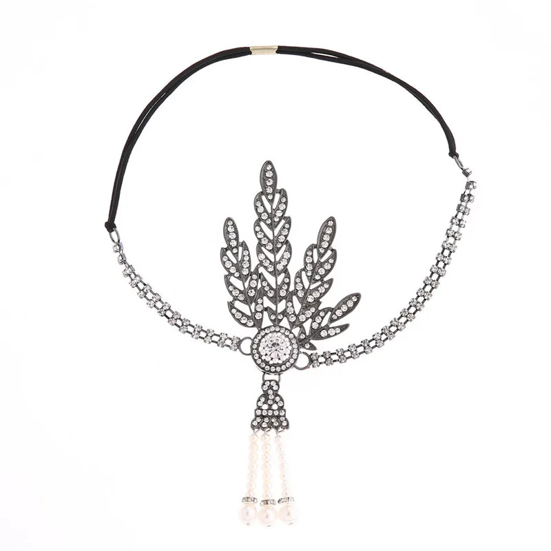 Повязка на голову "Великий Гэтсби" в стиле 1920-х серебристая слоновая кость