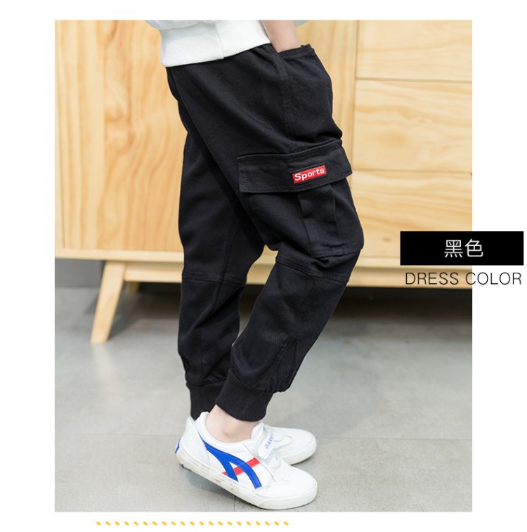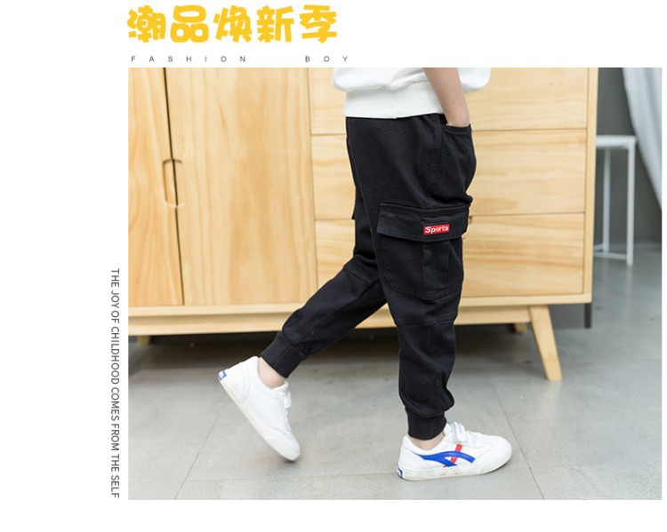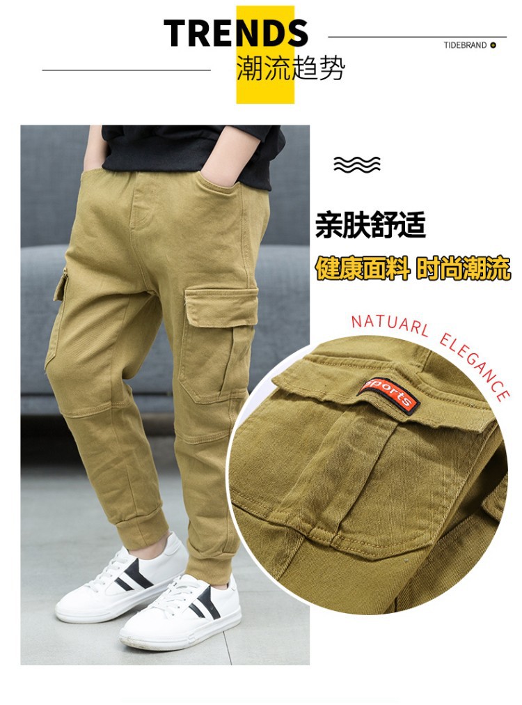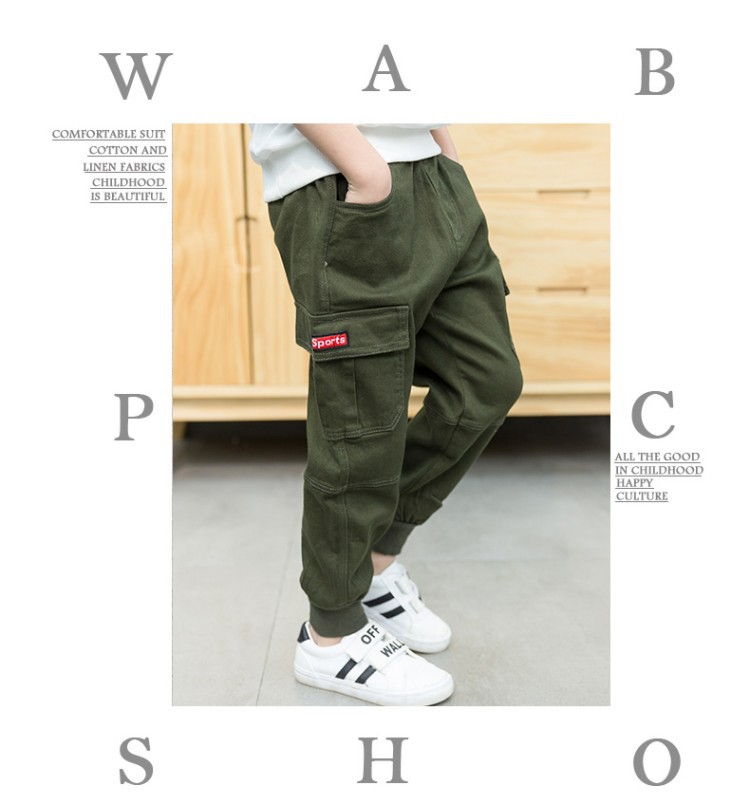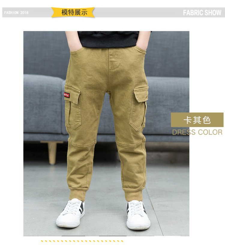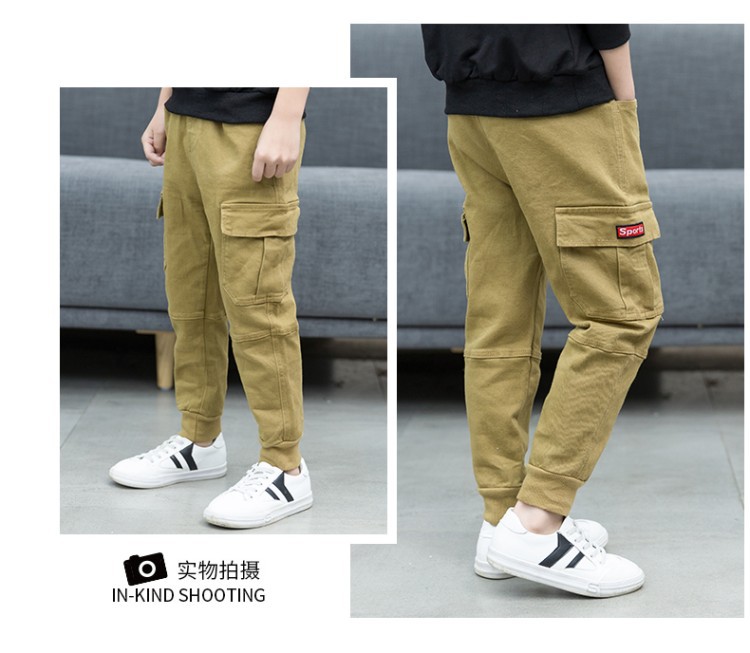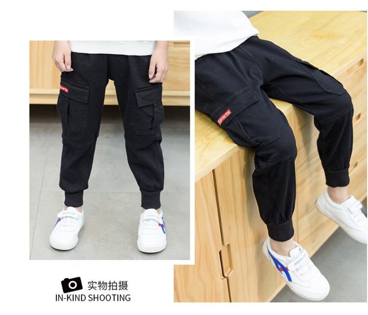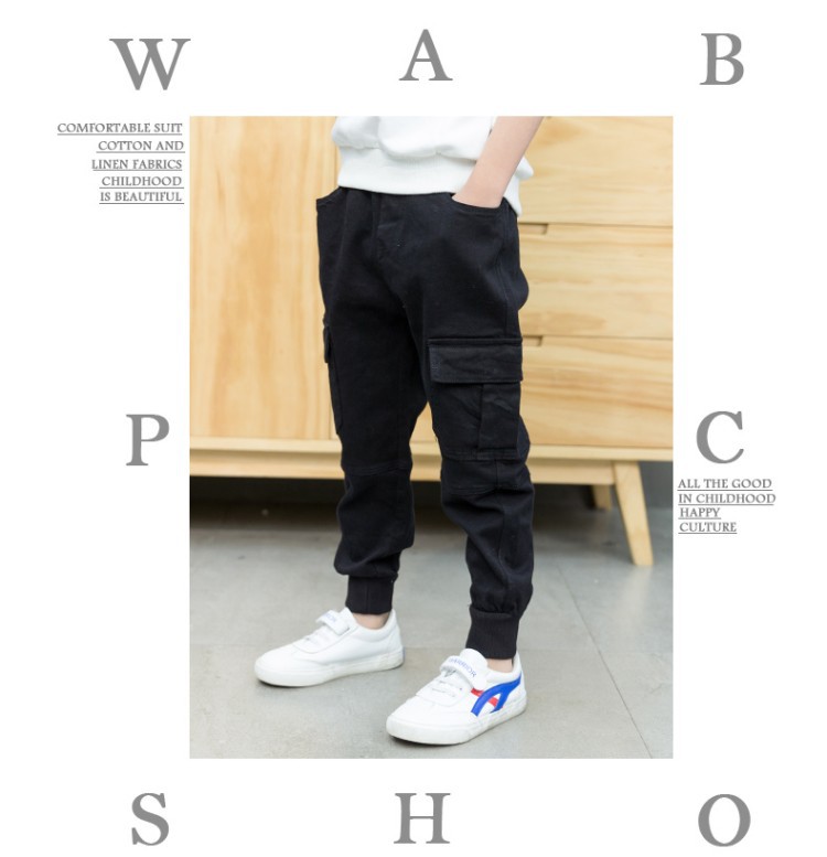Весенне-осенние повседневные детские джинсы спортивные штаны для мальчиков, свободные спортивные джинсовые штаны детские джинсовые брюки с большими карманами штаны-карго для маленьких мальчиков
