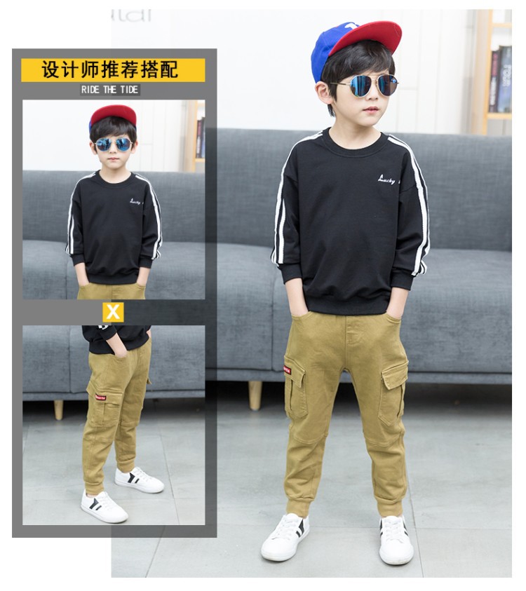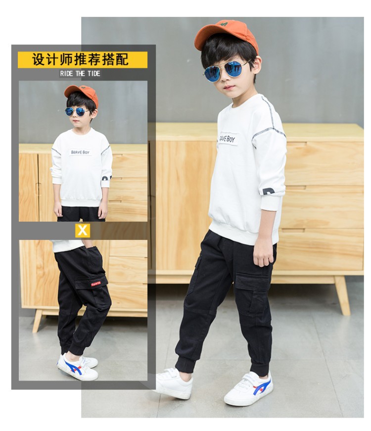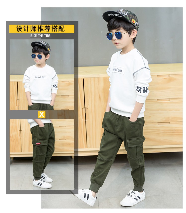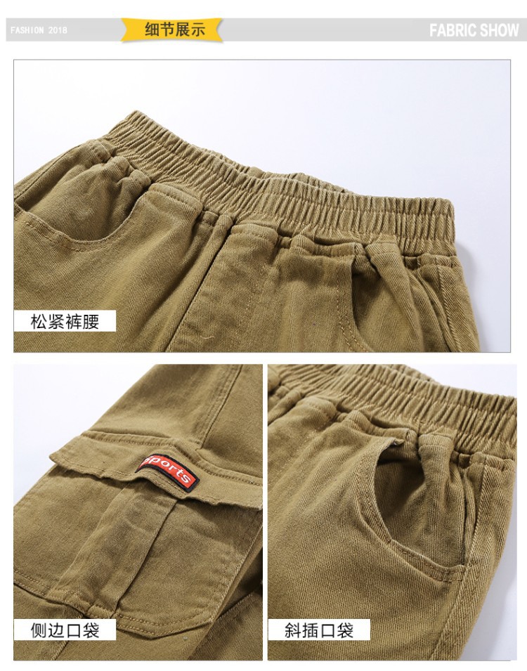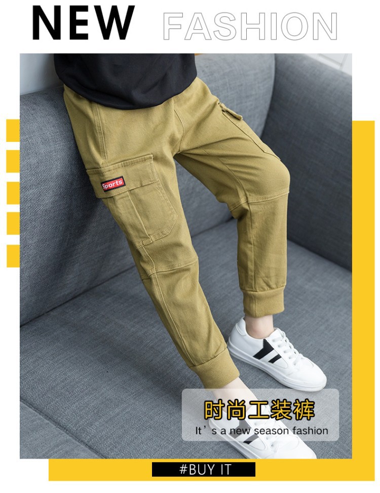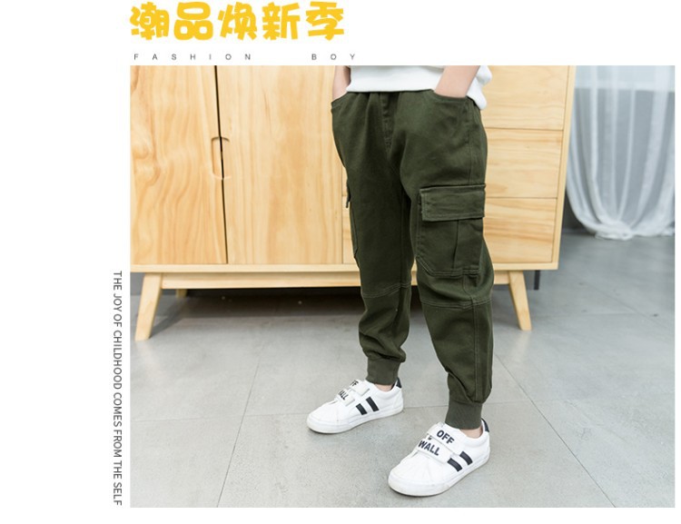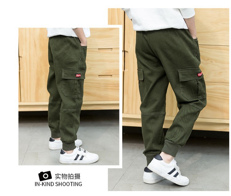 Весенне-осенние повседневные детские джинсы спортивные штаны для мальчиков, свободные спортивные джинсовые штаны детские джинсовые брюки с большими карманами штаны-карго для маленьких мальчиков