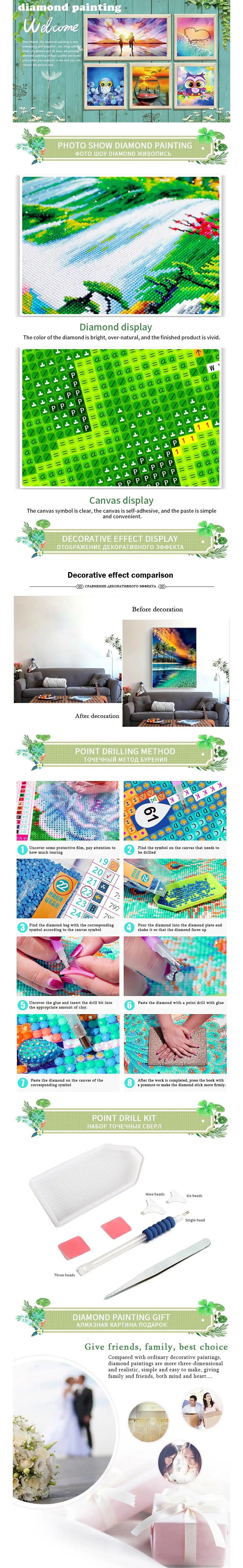 1. Об обслуживании клиентов Уважаемый покупатель, если у вас есть какие-либо вопросы, пожалуйста, не стесняйтесь связаться с нами. И мы ответим в течение 24 часов, кроме выходных. если вы не удовлетворены нашим продуктом и сервисом, пожалуйста, свяжитесь с нами, прежде чем оставить отрицательный отзывы, мы постараемся сделать все возможное, чтобы решить проблемы и сделать вас удовлетворенным. 2. Различия в цвете и погрешности в размере Вырезание, изготовление, измерение может привести к отклонению размера (плюс и minus1-2cm колебания), цветовая аберрация вызвана мониторами, погодой, освещением и другими факторами, изображения будут иметь разный цвет в разных мониторах, но это не влияет на внешний вид картины, пожалуйста, поймите. 3. О сервисе алмазной добавки У нас есть 20-30% дополнительных алмазов в каждой упаковке, у нас есть хороший контроль качества, если вы обнаружите отсутствие алмазов, первая отправка на нас. Мы можем отправить вас бесплатно. После этого вам придется оплатить доставку. Свяжитесь с нами по сообщению или trademanager.