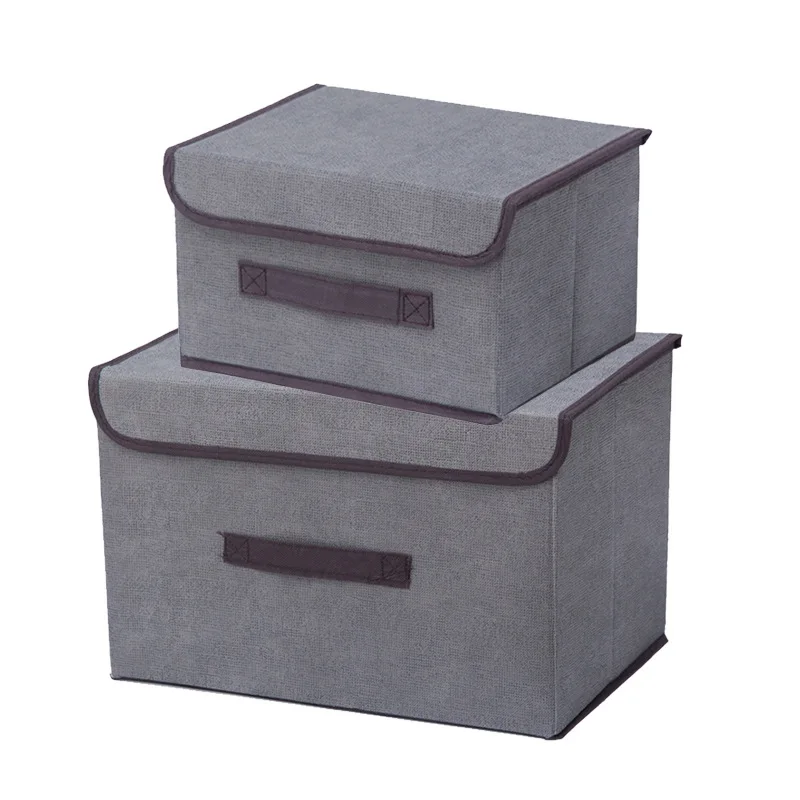 Коробка для хранения с крышкой, 2 размера, носки для одежды, игрушки, закуски, разное, органайзер, набор, тканевые коробки, косметика для дома, сплошной цвет